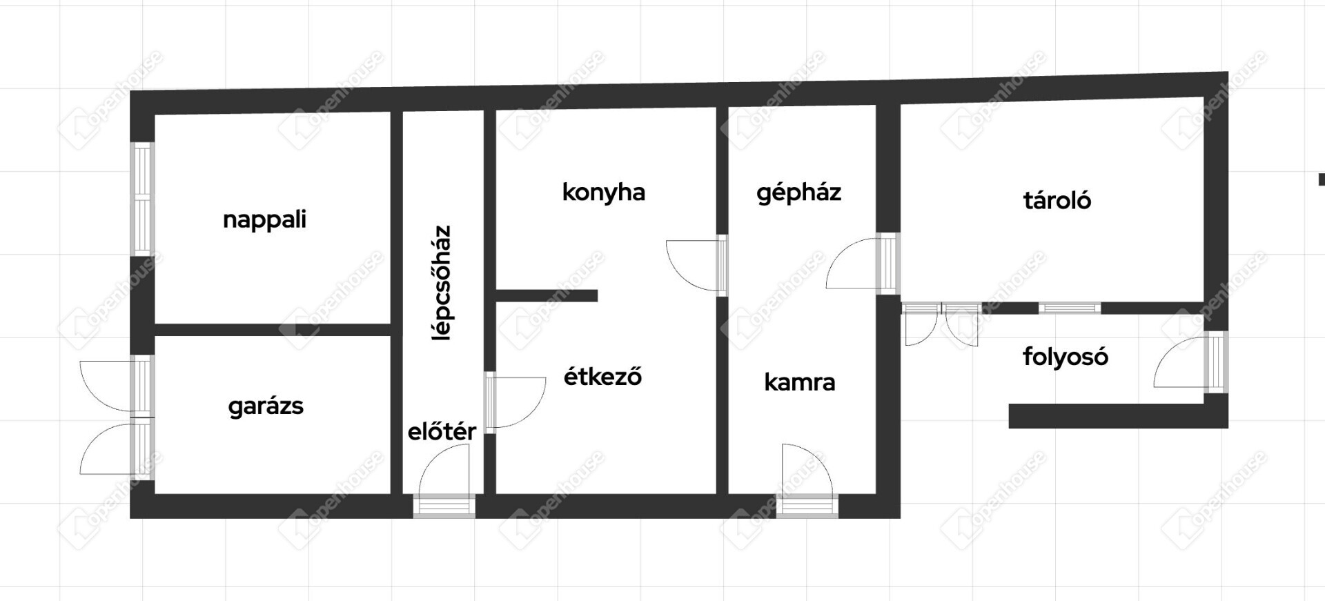 - Földszint: folyosó, garázs, nappali, étkező, konyha