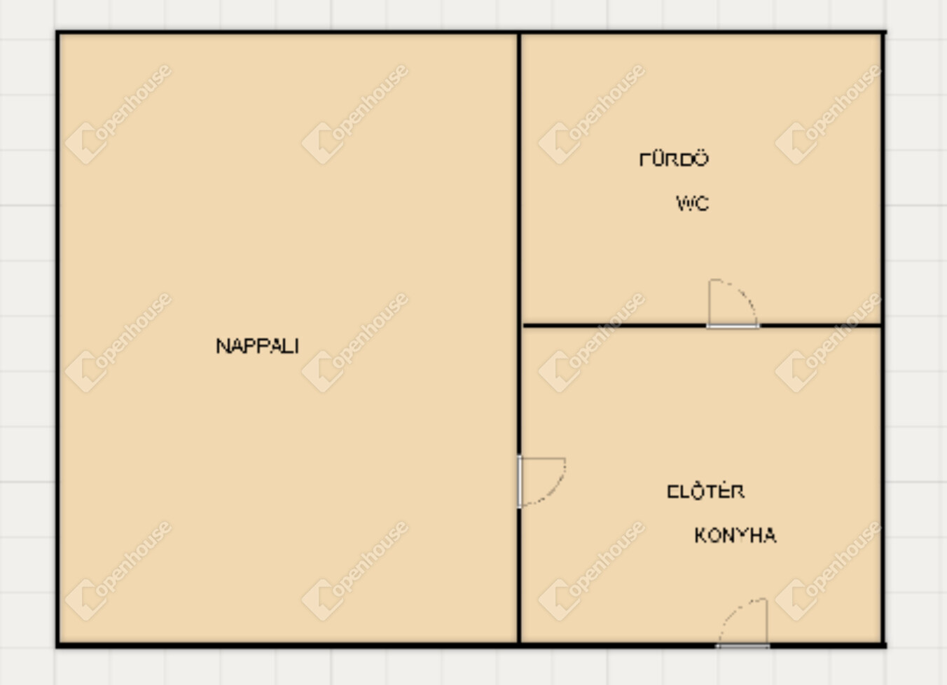 - földszint: előtér-konyha, fürdő, nappali illetve az emeletre felvezető lépcsőfeljáró