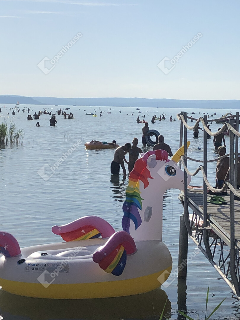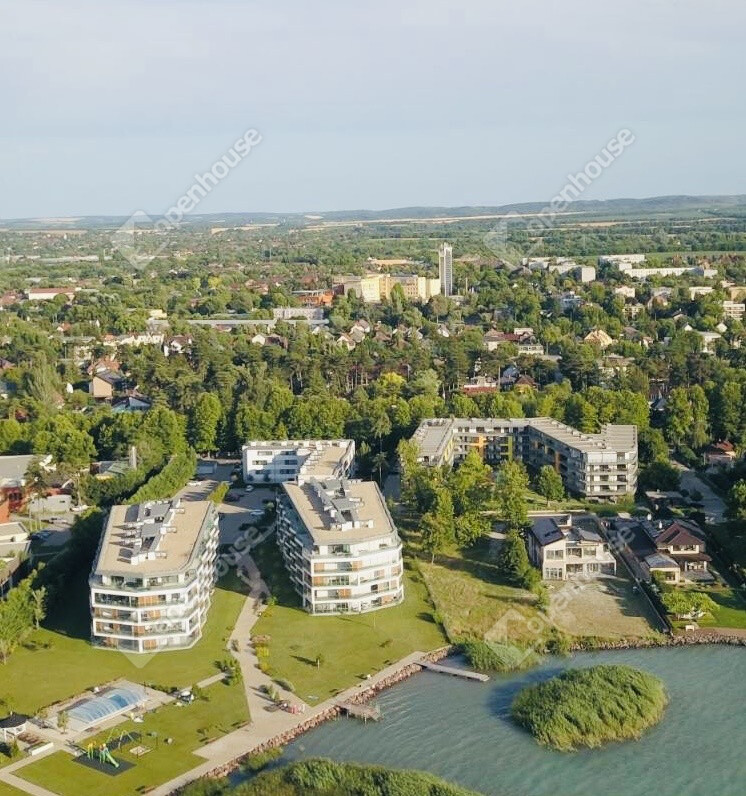 A közel 2 hektáros, teljesen zárt és gondosan parkosított lakópark saját partszakasszal, medencével, játszótérrel és pihenőterületekkel rendelkezik, ahol a Balaton közelsége a mindennapok természetes része.
