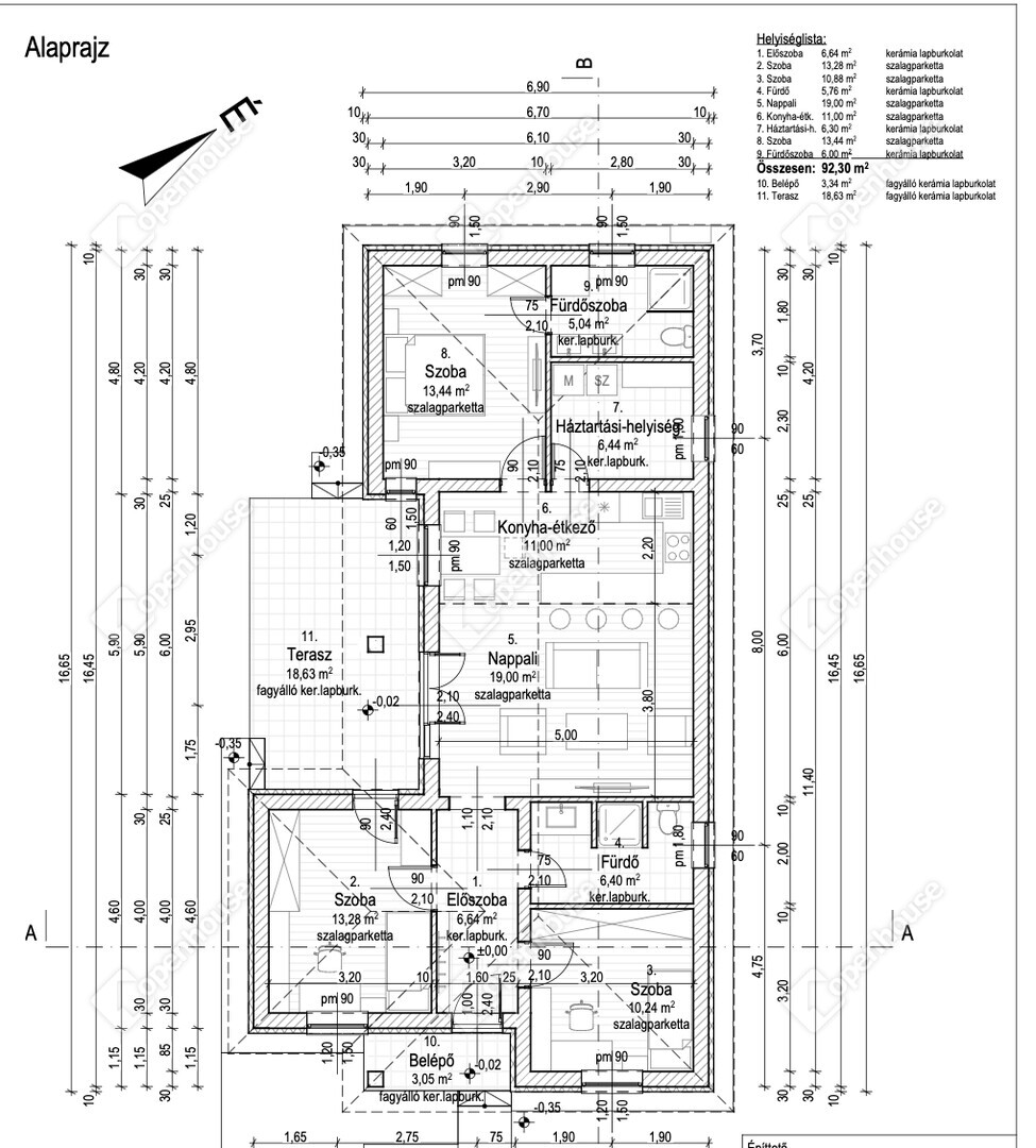 Az ingatlan 92,3 m²-es, 3 szoba + nappalis, tágas terekkel és kiváló elrendezéssel.