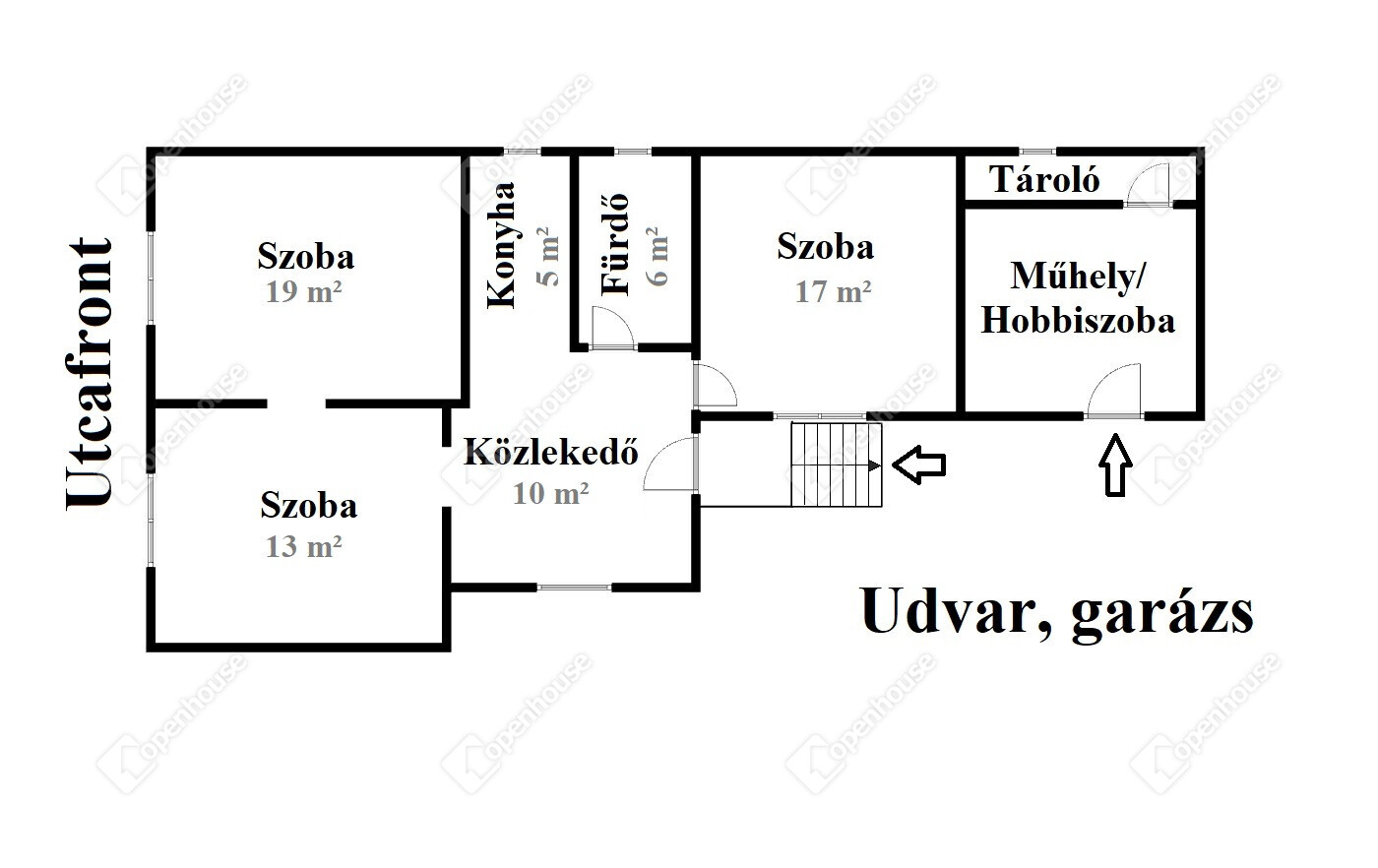 - a 2 utcafronti ablak és a bejárati ajtó műanyag, míg a többi nyílászáró fából készült