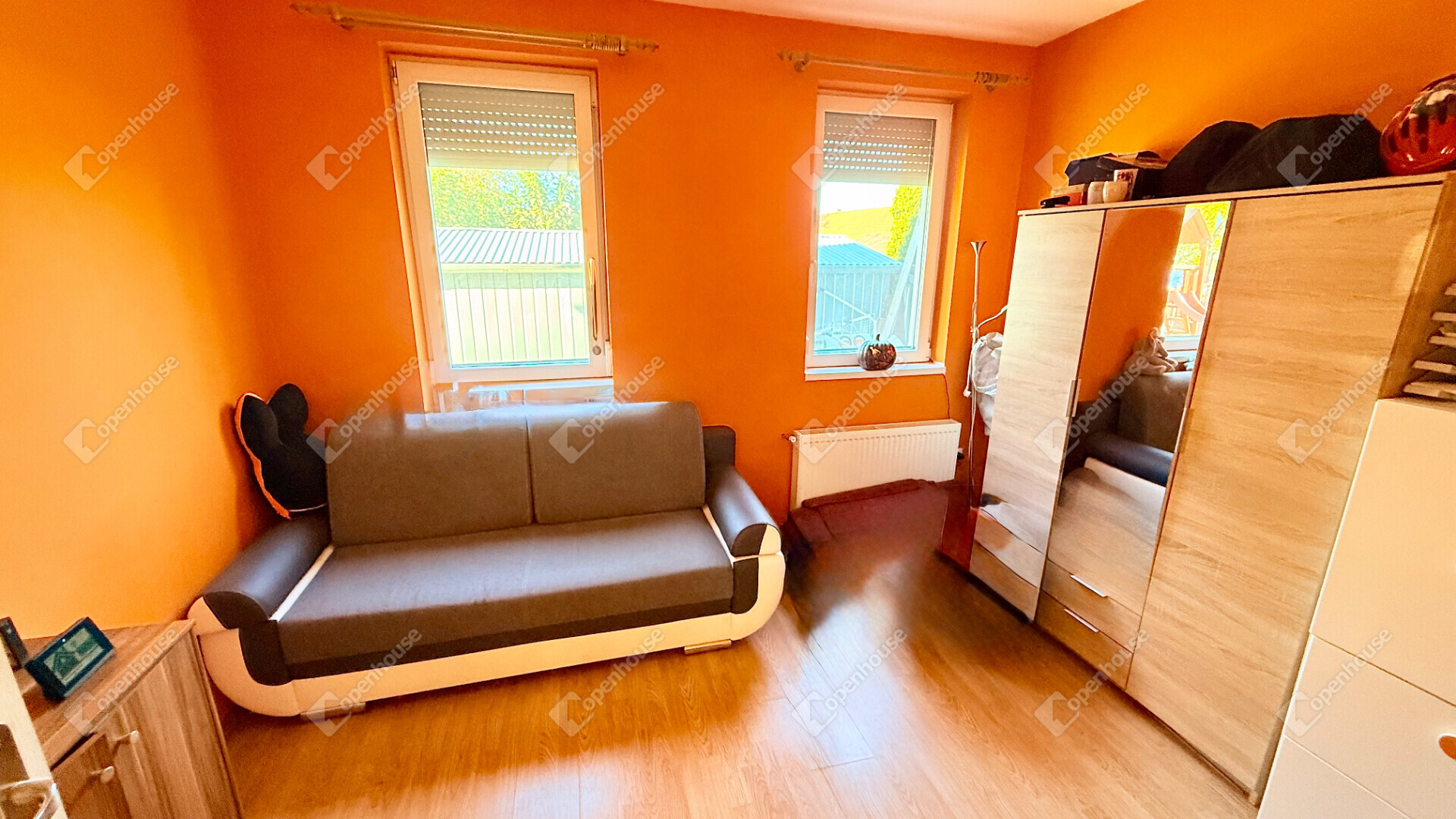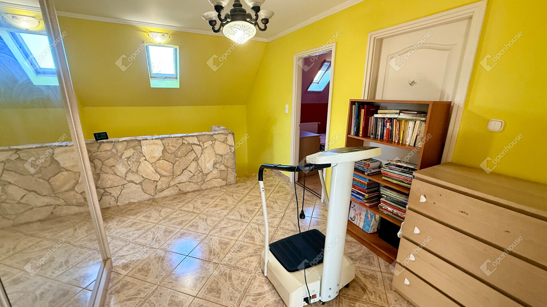 Emelet: társalgó, közlekedő, 3 hálószoba, és egy újabb fürdőszoba.