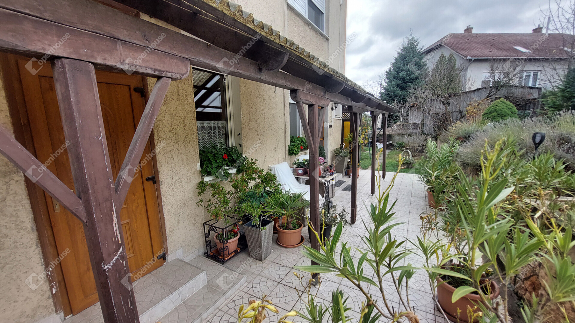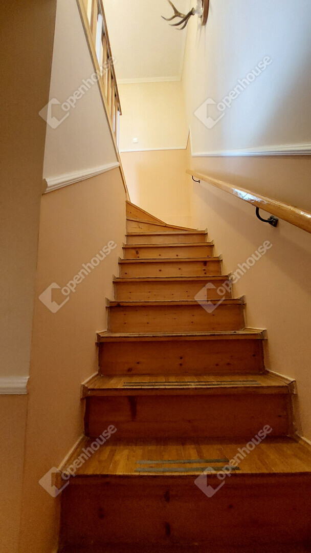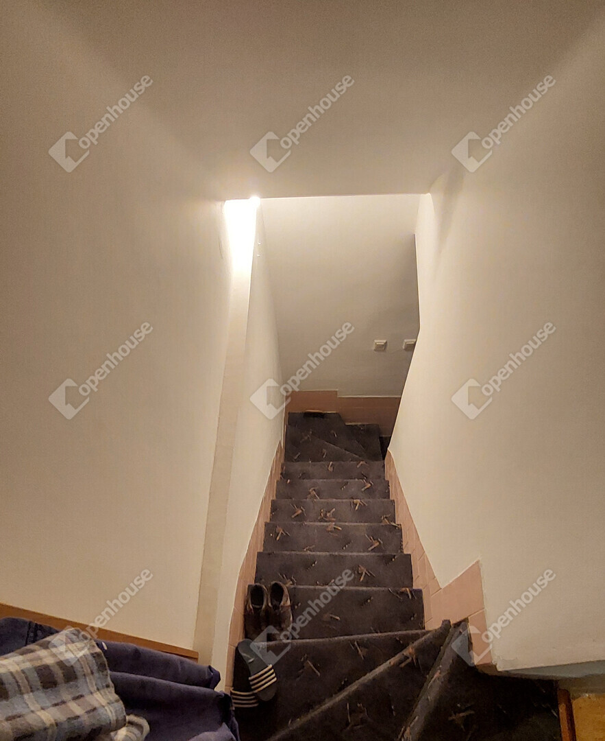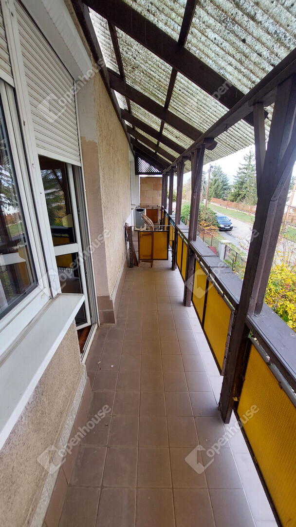 Földszint: előszoba, külön WC, konyha kamrával, tágas nappali; a bejárat előtt nagy terasz, ahonnan néhány lépcsőn keresztül, szintkülönbséggel juthatunk a gondozott kertbe. A nappalihoz nagy erkély tartozik..