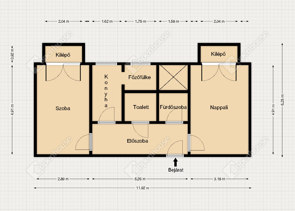 - a szobák laminát padlóval, a többi helyiség járólappal burkolt