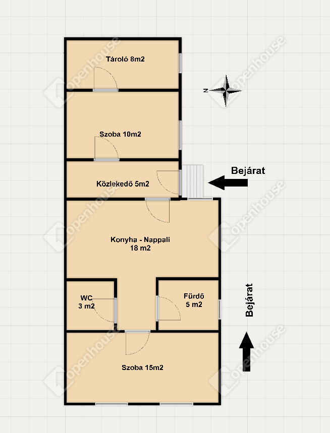 | Tároló | 8.00 m2 | Beton |