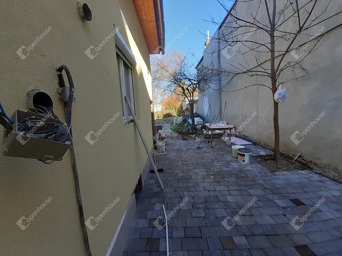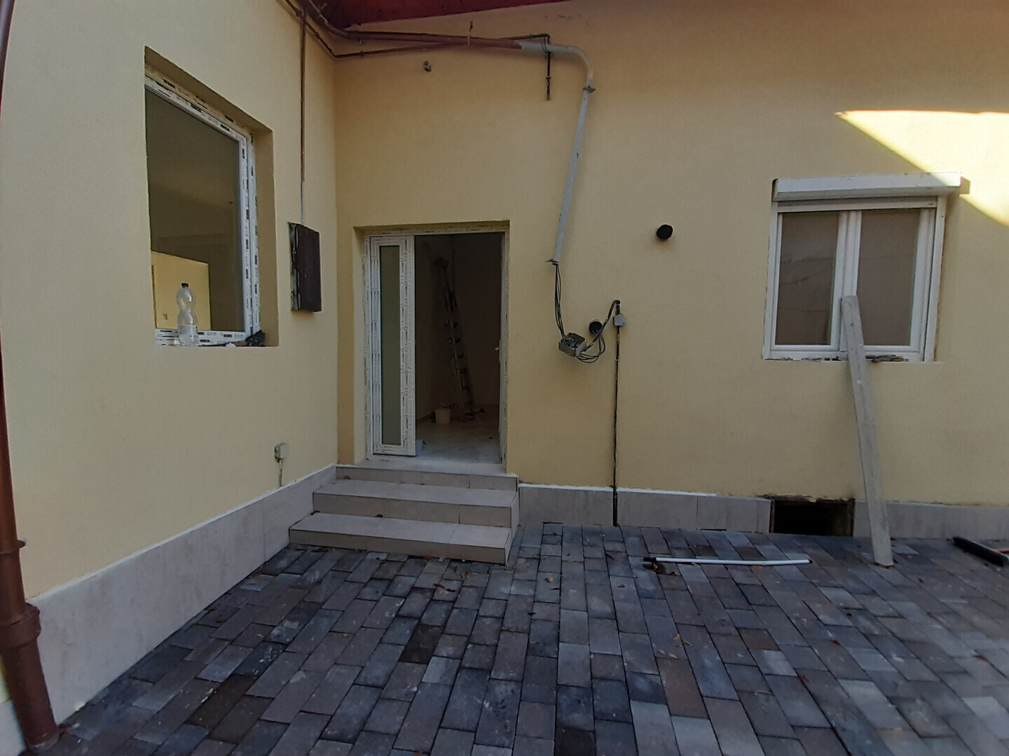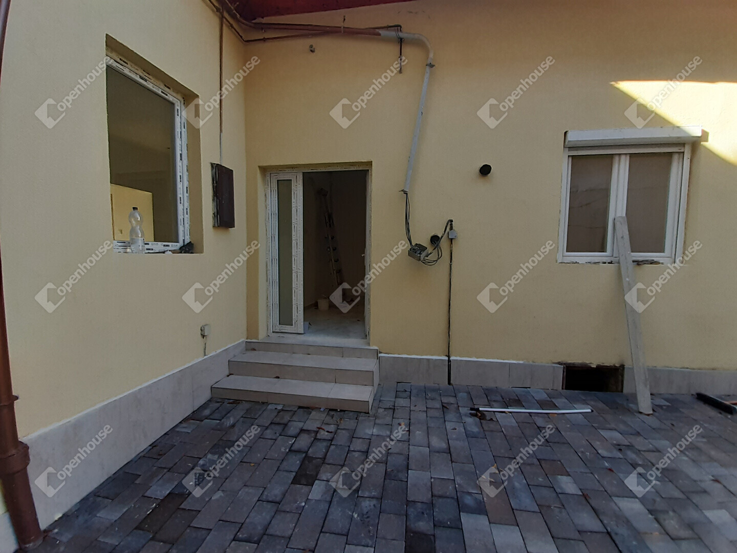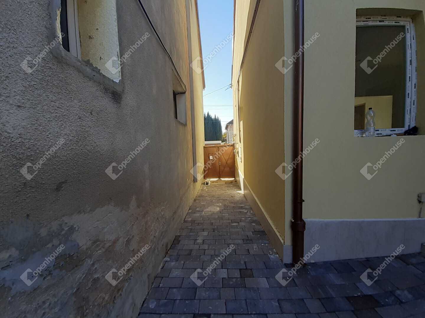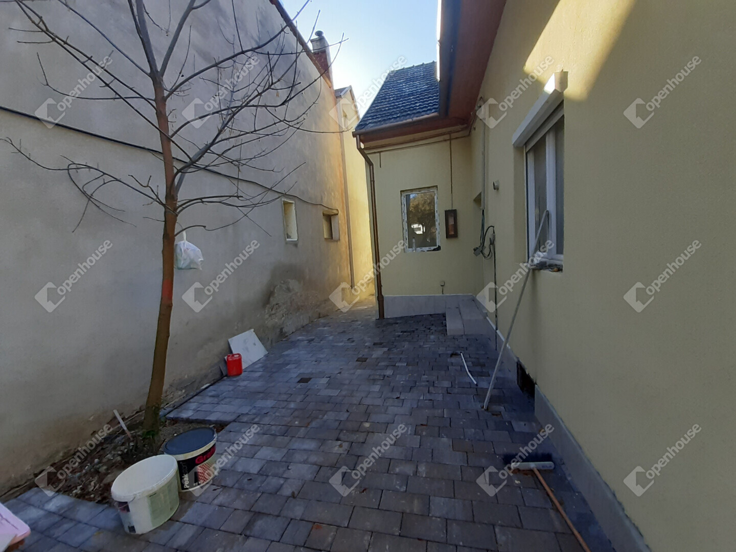 Térkövezett bejárat, rendezett udvar