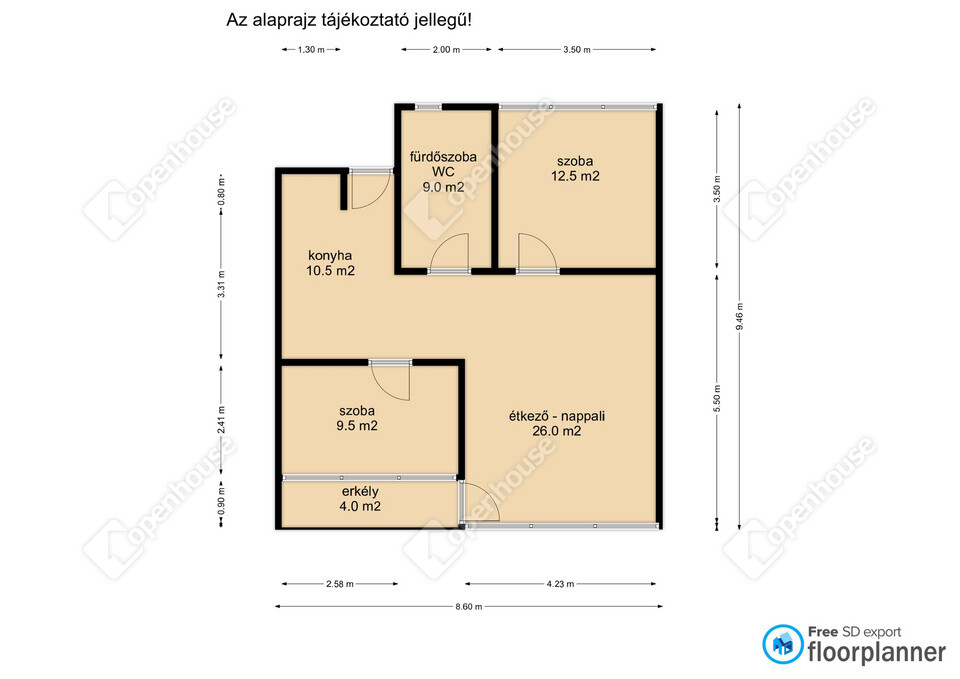 | Szoba | 9.50 m2 | |