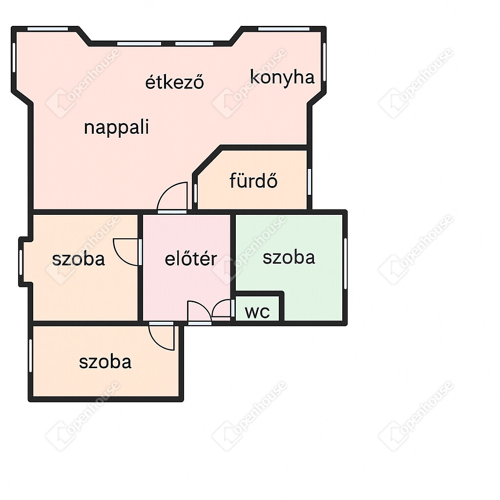 - amerikai konyhás nappali + 3 különnyíló szoba