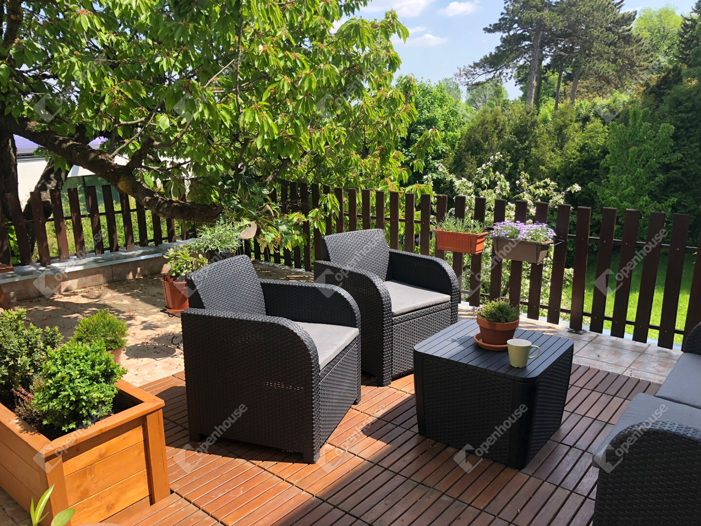 A terasz a nappaliból nyílik, így szerves része a családi programoknak, kikapcsolódásnak.