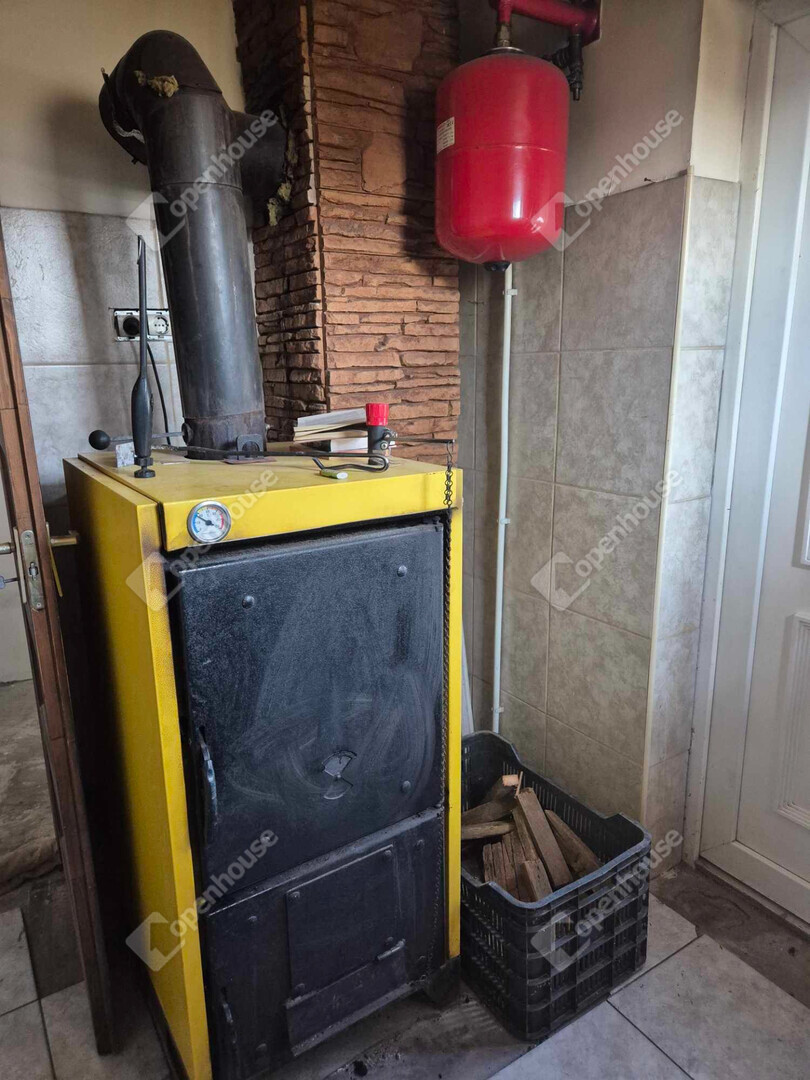A ház ami egyébként állandó lakhatásra alkalmas, található egy nagyon jó minőségű Ariston villanybojler, mely a melegvíz ellátásról gondoskodik, valamint a kazán ami a ház melegét biztosítja. Ez a kazánház a teraszról is megközelíthető, hogy ne kelljen a házon keresztül bevinni a fát a fűtéshez, de nagyon praktikus módon a házból is megközelíthető, ha este még kellene tenni rá fát, akkor ne kelljen kimenni a hidegbe.