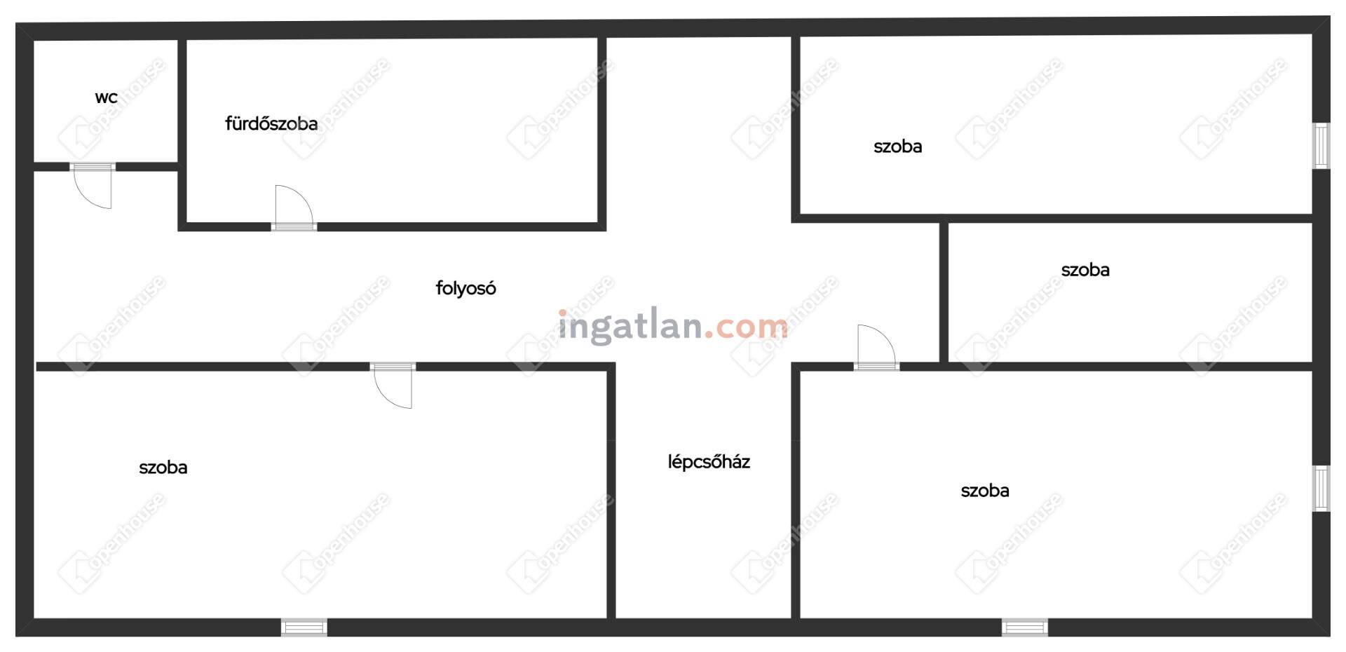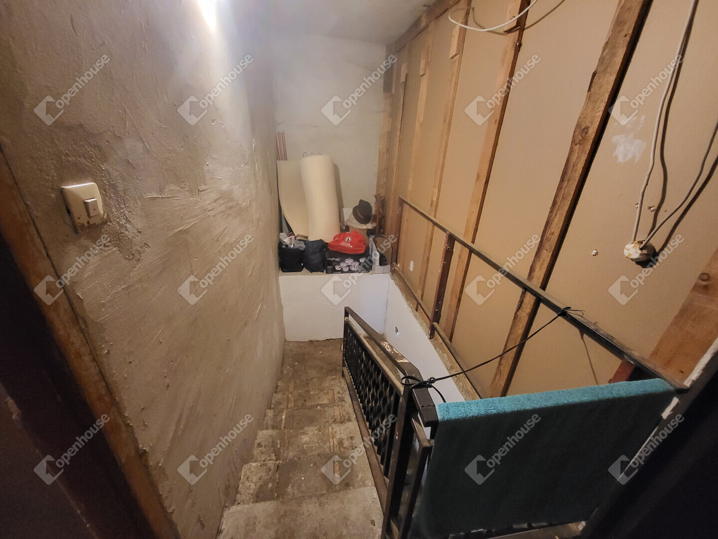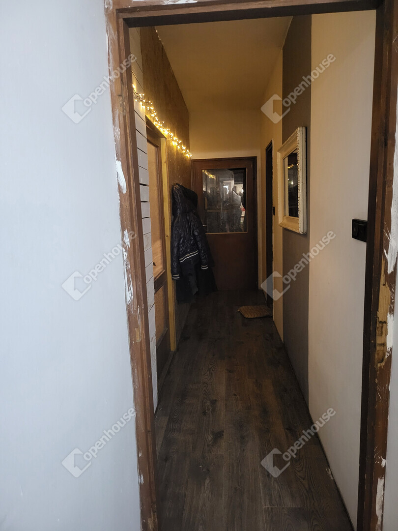 A nappaliból egy folyosóra jutunk, ahonnan két külön nyíló szoba, egy külön WC, valamint a lépcsőház érhető el, amely az emeletre vezet.
