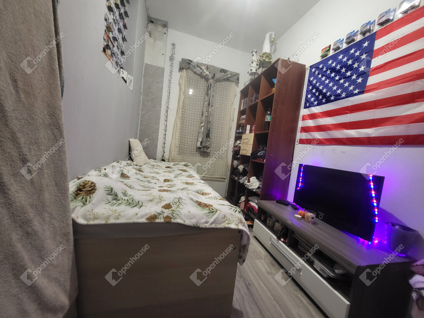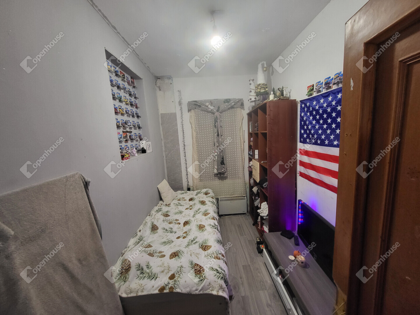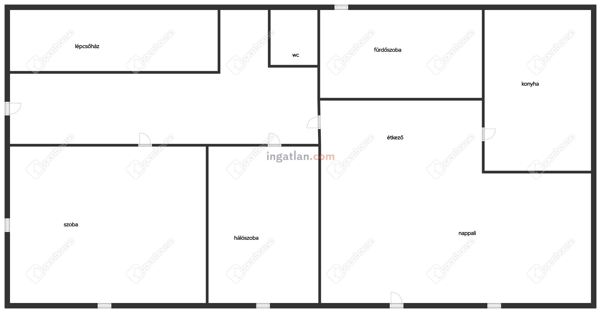 A nappaliból egy folyosóra jutunk, ahonnan két külön nyíló szoba, egy külön WC, valamint a lépcsőház érhető el, amely az emeletre vezet.