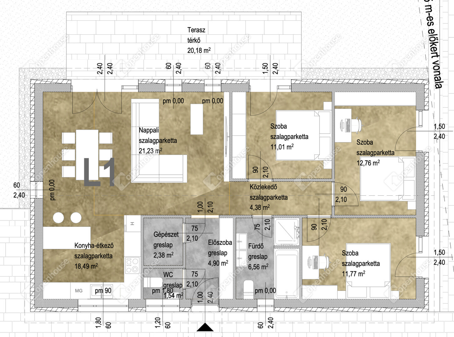 | Amerikai konyha | 18.49 m2 | Laminált padló |