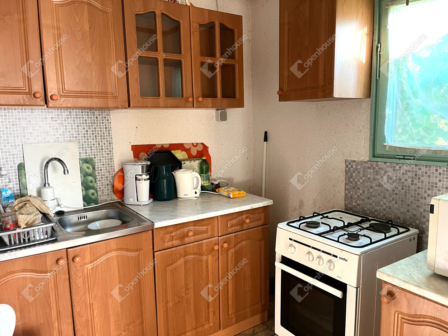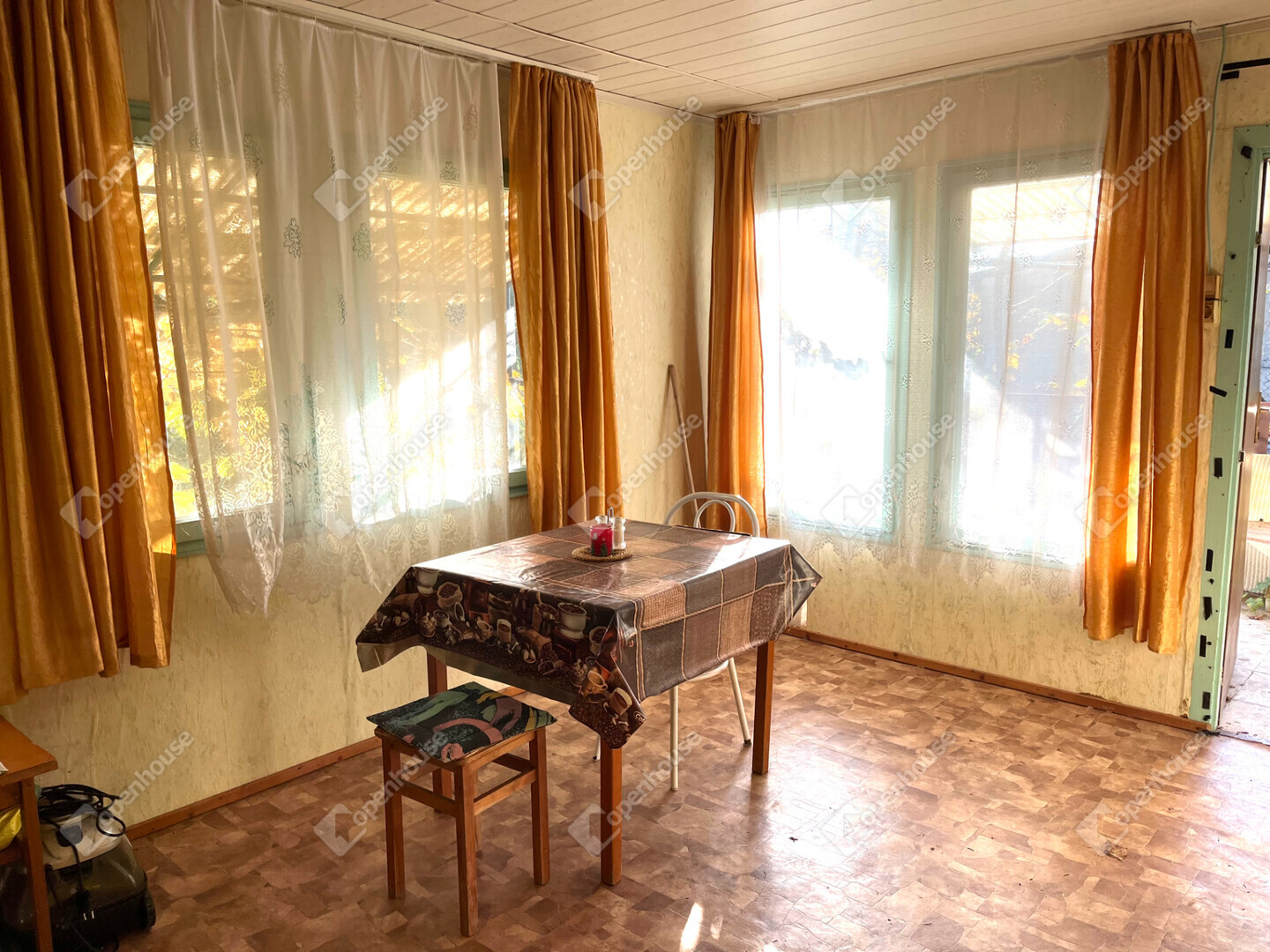 A telken egy 45 m²-es, alápincézett faház áll, amely két szobából, egy nappaliból, konyhából és fürdőszobából áll. A ház jelenlegi állapotában felújítást igényel, azonban a villamos hálózat korszerűsített, így a villanyfűtés kiépítése egyszerűen megvalósítható. A tetőn elhelyezett napelemek tovább növelik az ingatlan energiahatékonyságát és csökkentik az üzemeltetési költségeket.