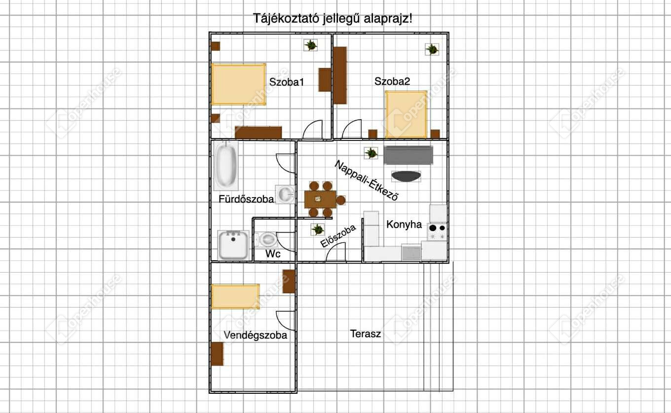| Előtér | 3.72 m2 | Laminált padló |