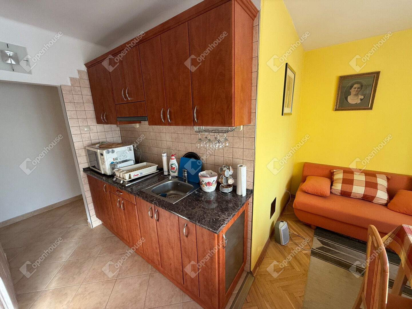 A faparketta és a burkolatok kifogástalanok, műanyag nyílászárók, a konvektorok megbízhatóan működnek.
