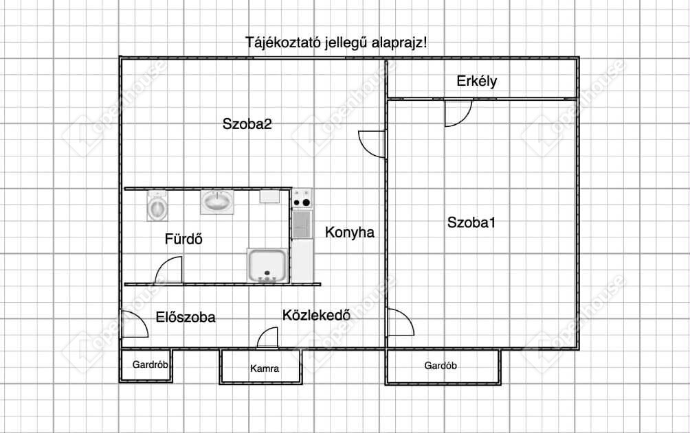 Elrendezés: jelenleg nappali és étkező, de az étkező könnyedén külön szobává alakítható, így akár 1,5 szobás lakássá is formálható