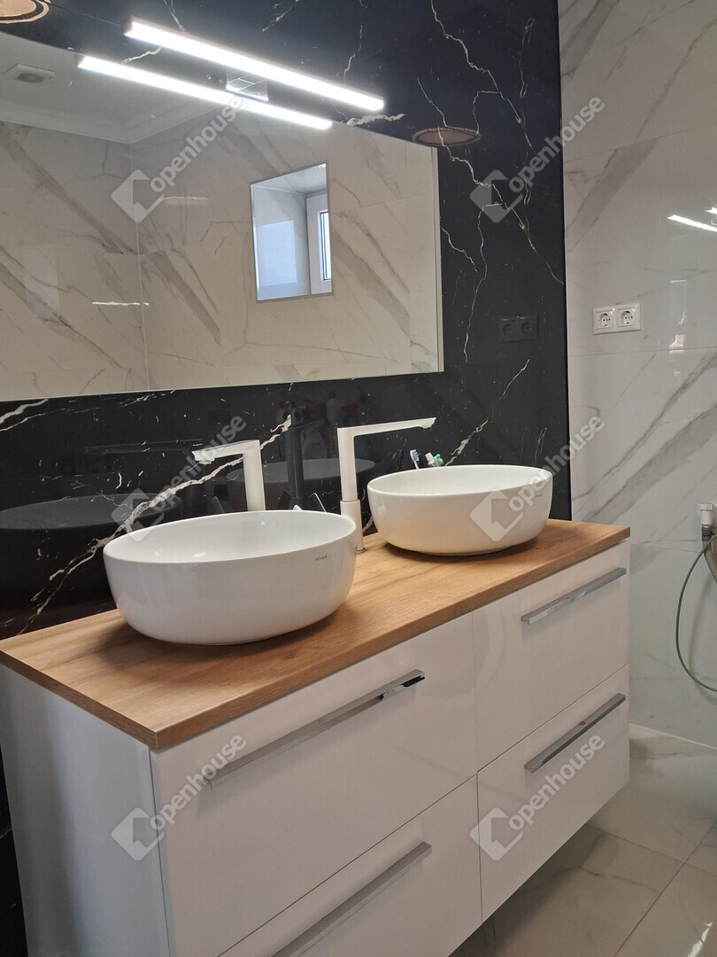 - a szobákban, közlekedők és nappali laminált padlóval, a többi helyiség járólappal burkolt