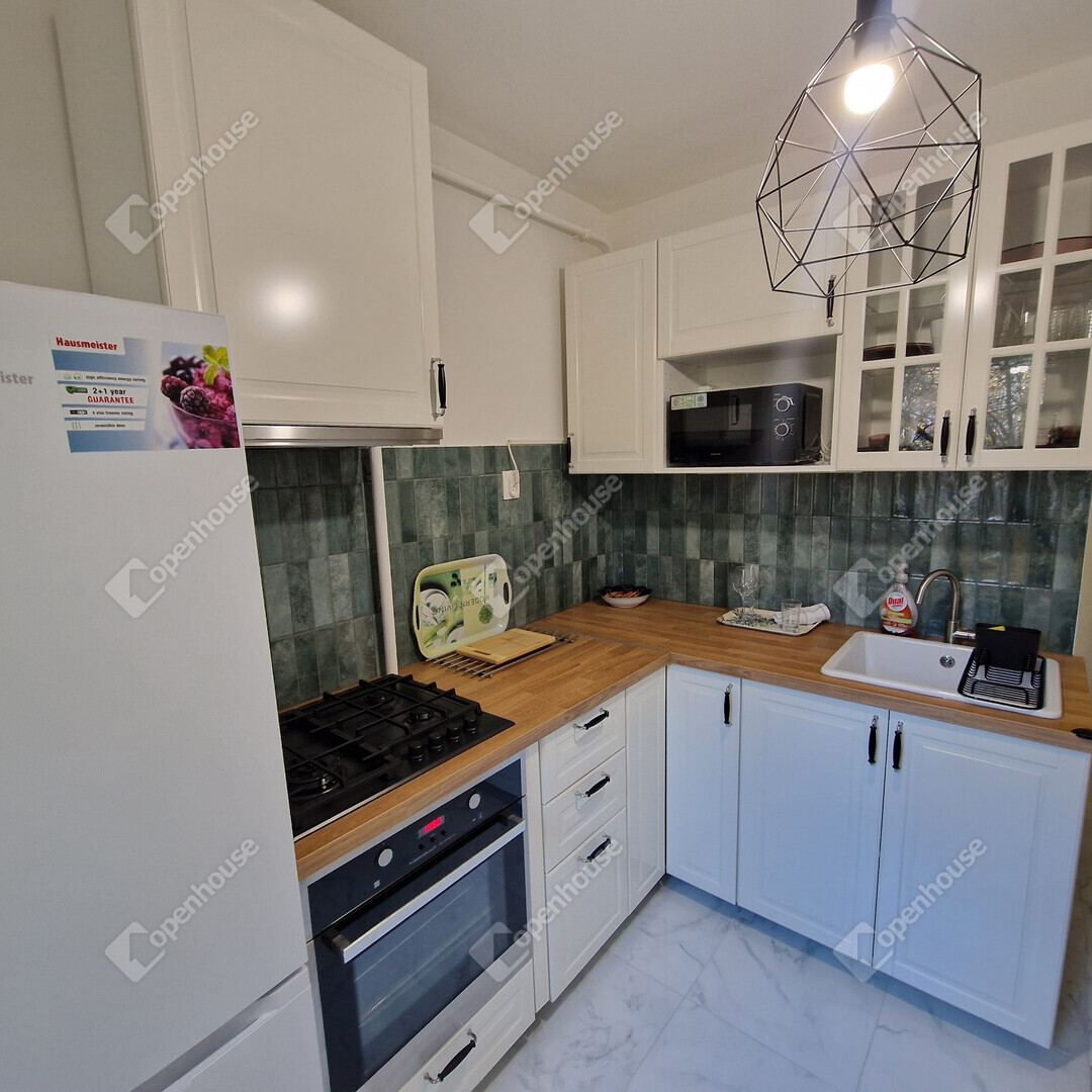 Gépesített, modern konyha, új bútorok, beépített gardróbszekrény, fürdőkád szolgálja a bérlő kényelmét.