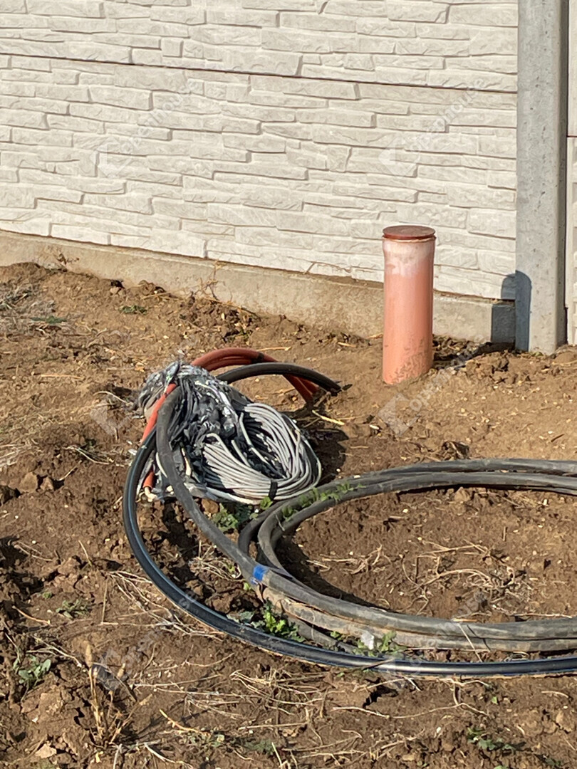 Az összes közmű a telken belül rendelkezésre áll, a mérőkkel együtt: a víz kiépített aknában, órával, vízszűrőkkel ellátott, a szennyvíz kiállások kialakításra kerültek, a villany 3*25A, a nappalin kívül a vezérelt óra is rendelkezésre áll, az ipari áram vételi lehetőség is ki lett alakítva. Gázcsonk is a telken belül van. A víz a kert több pontjára is el lett víve, így a telek közepén és a végében is megoldott a vízvételi lehetőség.
