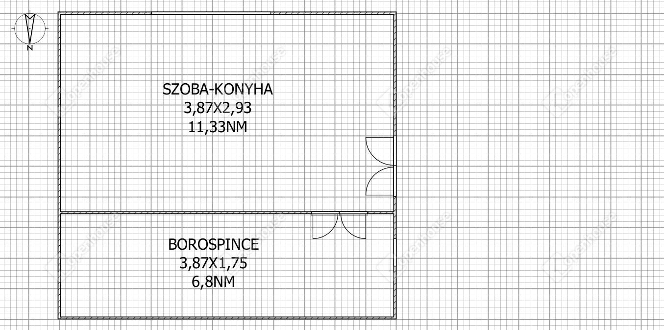 Az épület összesen 18 m² alapterületű, melyben egy 11,2 m²-es konyha–szoba, valamint egy 6,8 m²-es borospince található. A házhoz egy 4 m²-es, fedett terasz kapcsolódik, amely ideális hely a reggeli kávéhoz vagy egy pohár bor melletti esti beszélgetéshez. A telken egy különálló, kisebb építmény is helyet kapott, amely akár hangulatos kiülővé vagy vendégházzá is alakítható.
