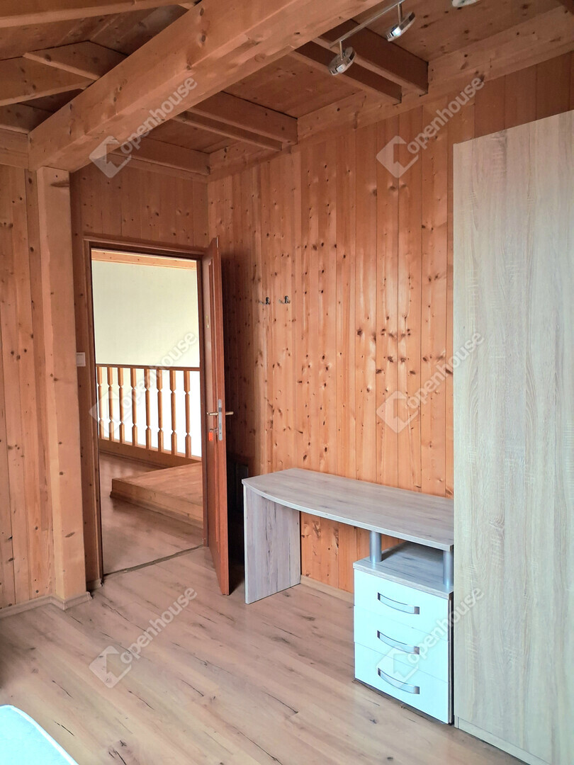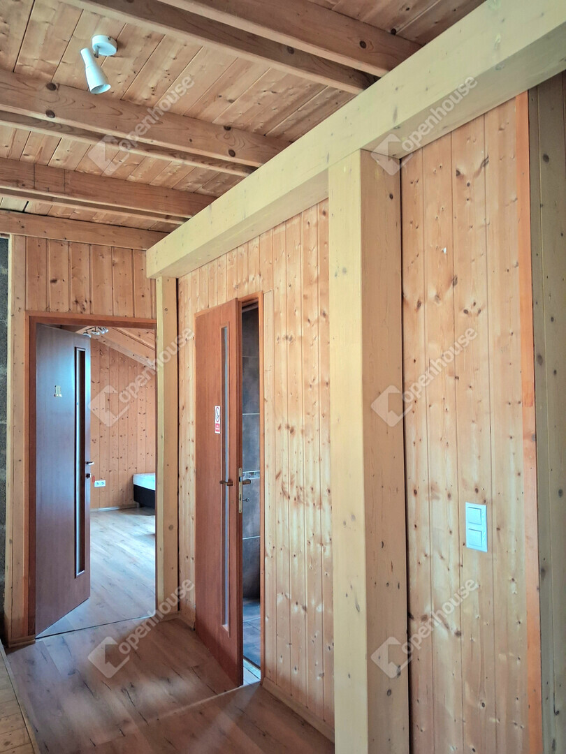 Az egész épületben a fa meleg hangulata dominál. Fölszinten és az emeleten látszó gerendák, a fürdőszobában minőségi burkolat,az egyedi készítésű fa beltéri ajtók, mind melegséget árasztanak.Minden szegletéből a nyugalom, a kényelem és a kifinomultság sugárzik.