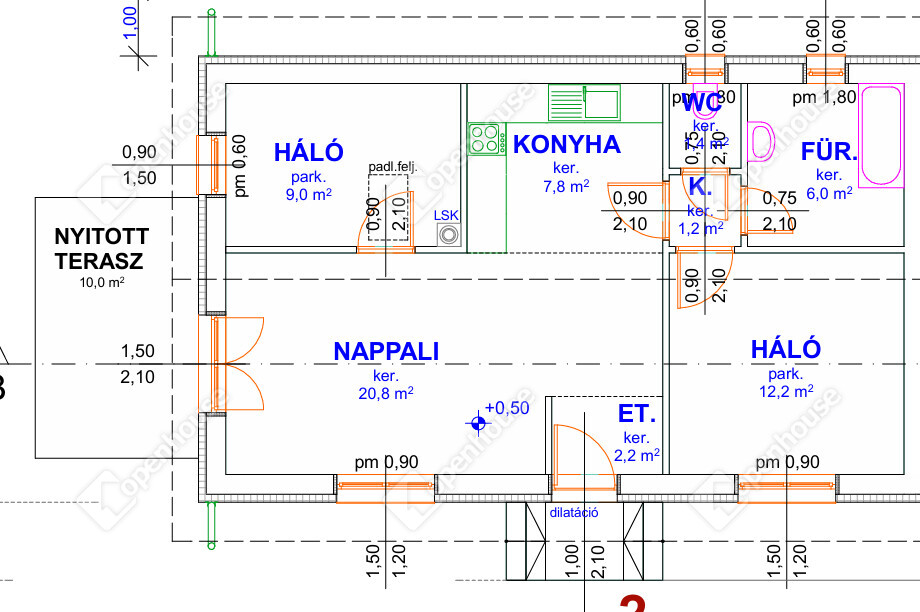 | Konyha | 7.80 m2 | Járólap |
