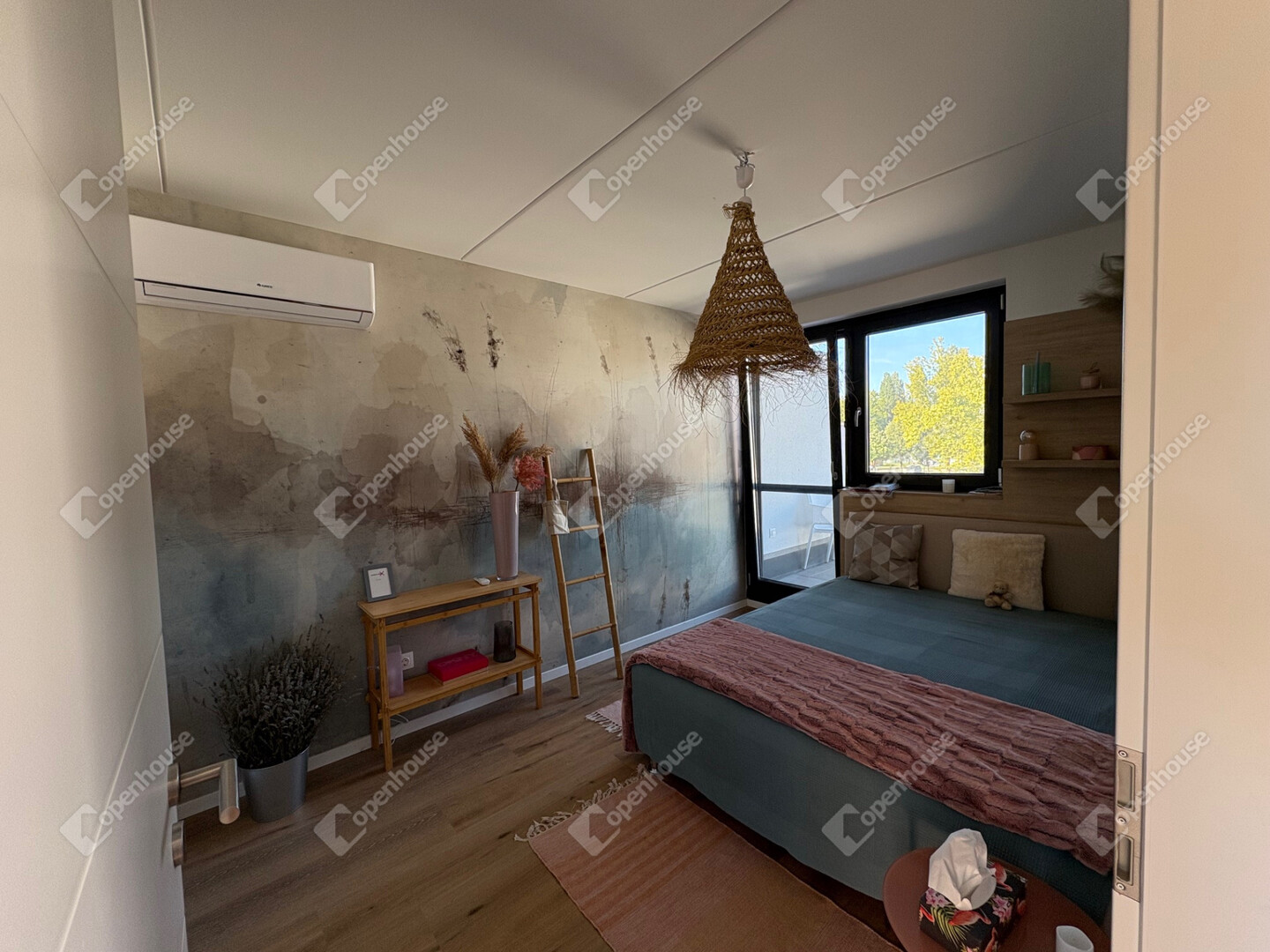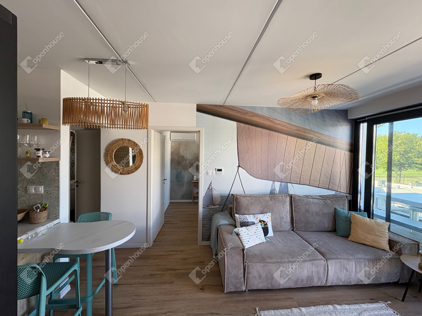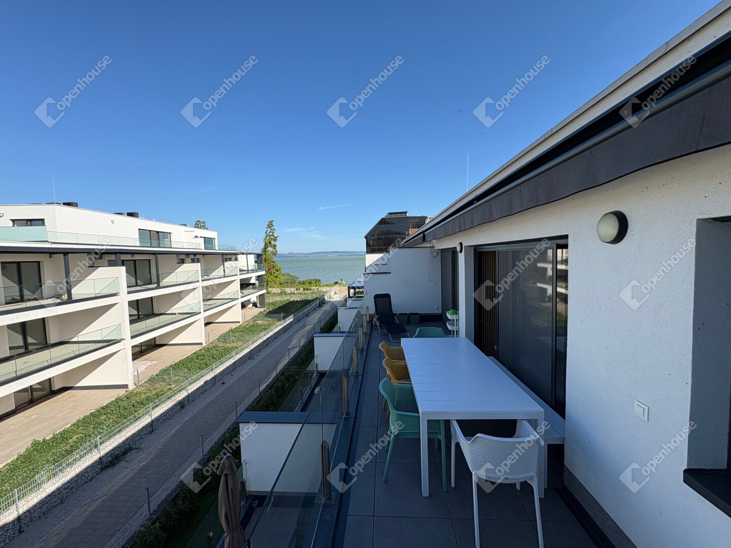 A 2023- ban átadott 54 nm-es lakás a második emeleten található , Balatonra néző panorámával.