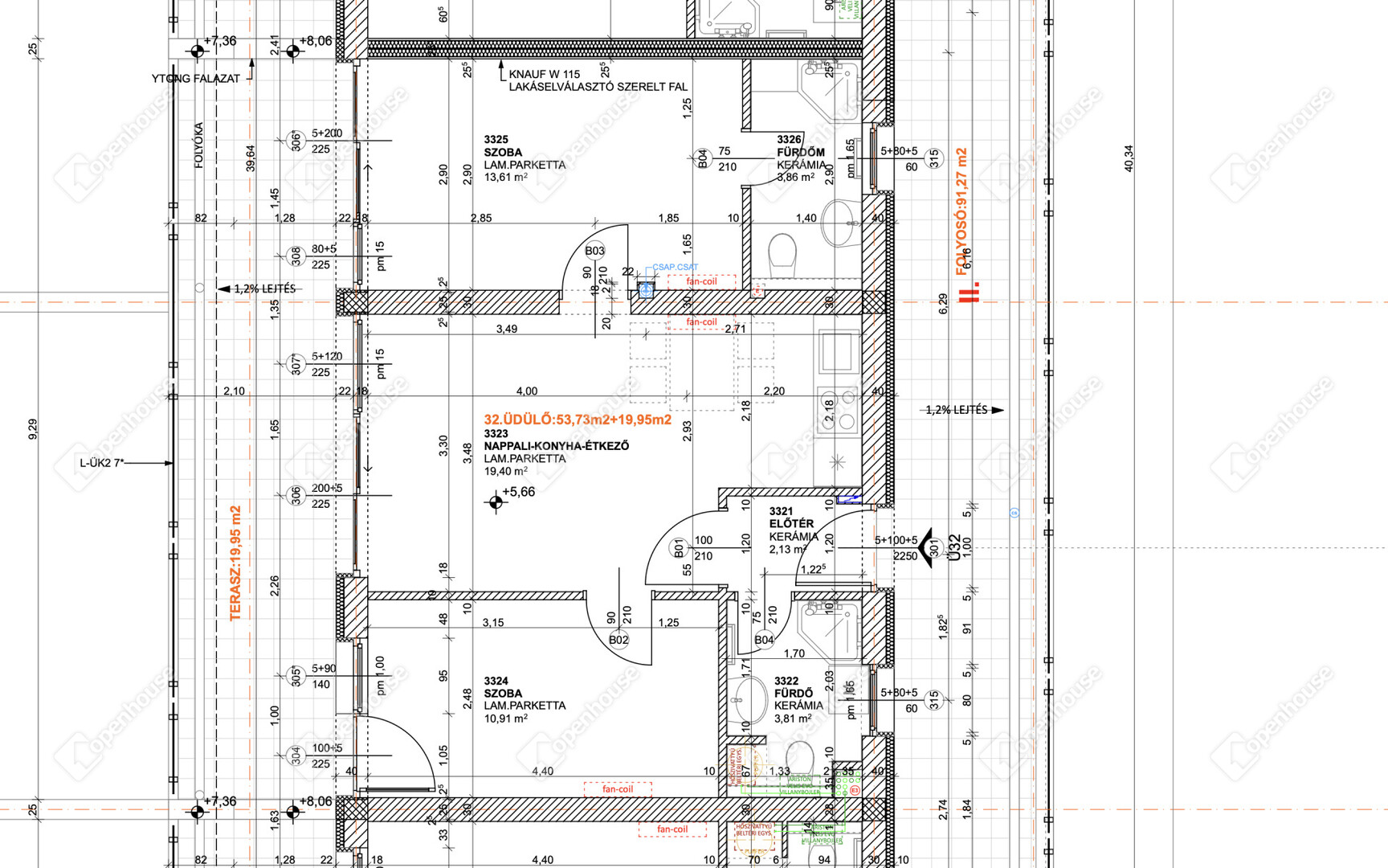 Elosztása - 2 hálószoba, tágas nappali, amerikai konyha-étkező, 2 fürdőszoba, 20 nm-es teraszkapcsolattal.