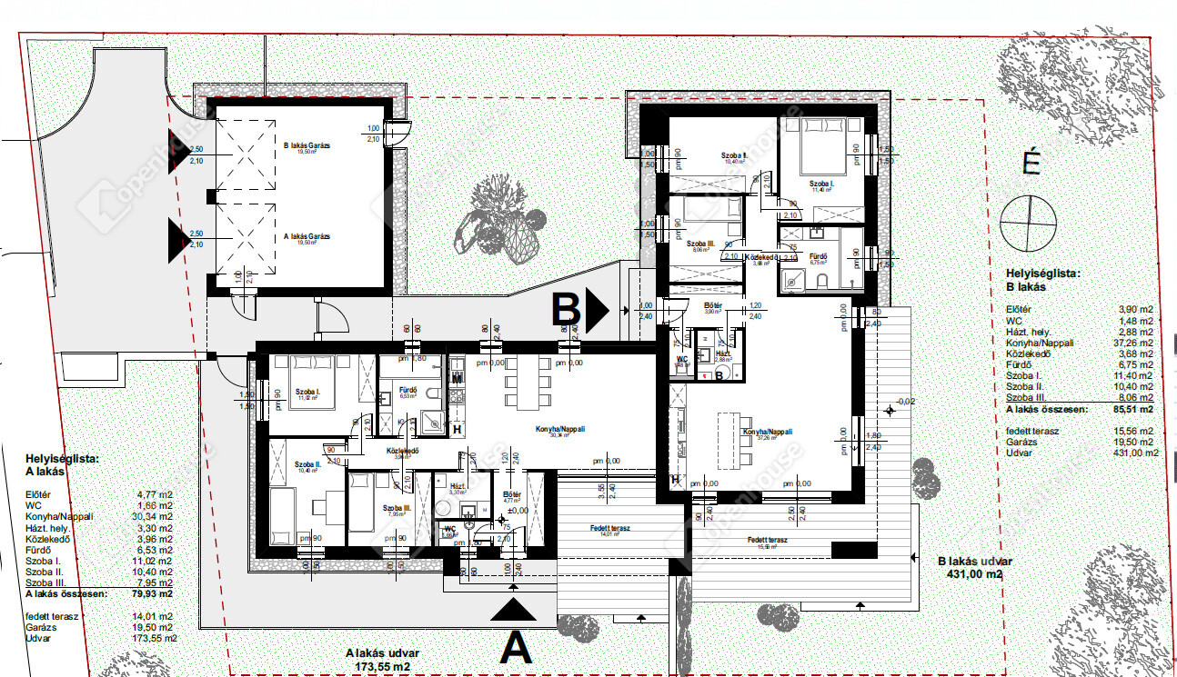 A "B" épület 85,51 négyzetméter alapterületű, melyhez egy 15,56 négyzetméteres fedett terasz, valamint egy 431 négyzetméteres telek tartozik.
