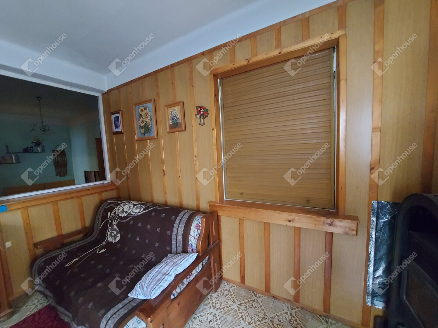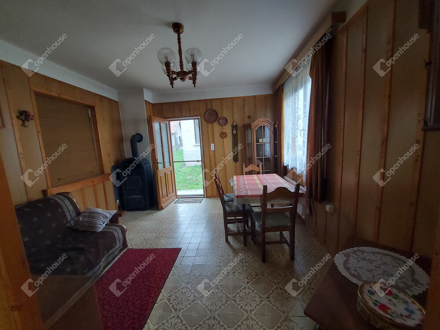 A ház helyiségei: előszoba, két külön nyíló szoba, konyha, nappali–étkező, fürdőszoba és külön WC.