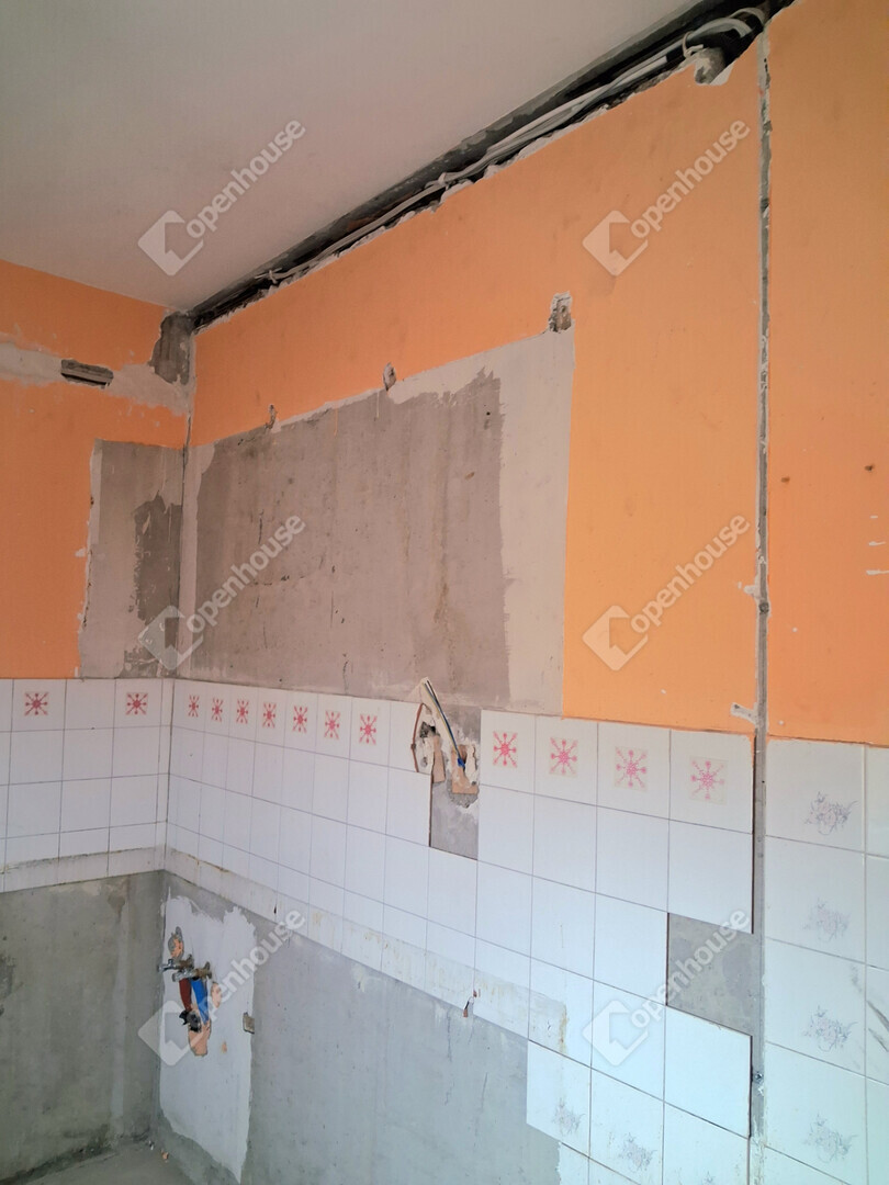 Falban a villanyvezetékek,vízvezetékek,fürdőszoba illetve a wc cseréje az lakásban megtörtént.