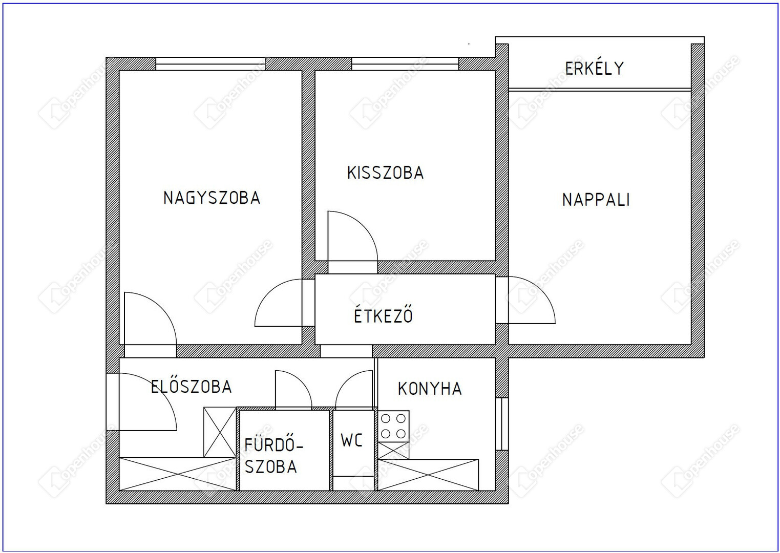 - A lakásban egy nappali, 2 szoba, konyha, előszoba, közlekedő, fürdőszoba, WC külön helységben található.