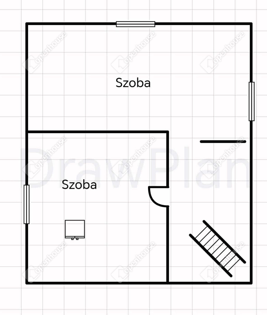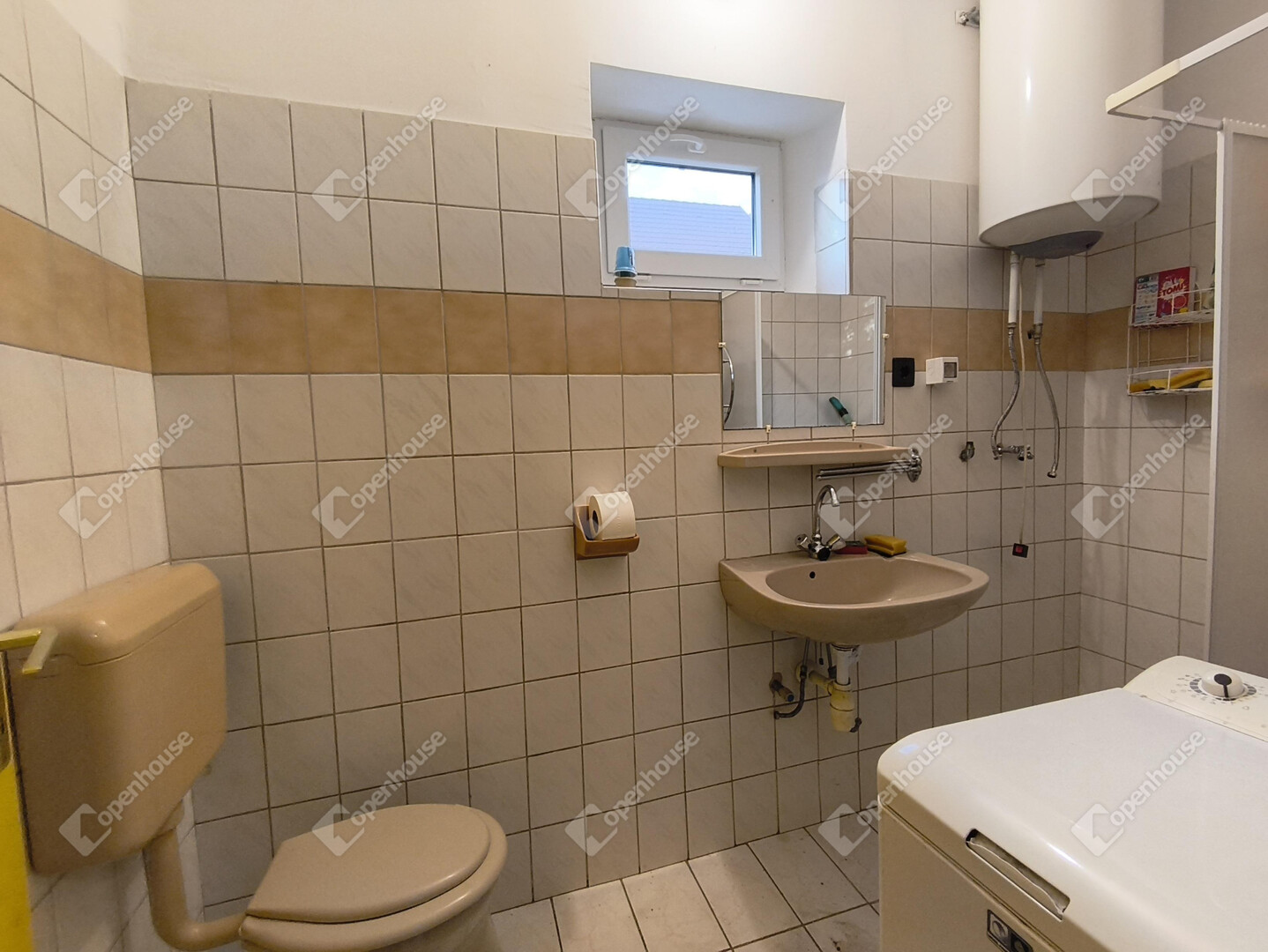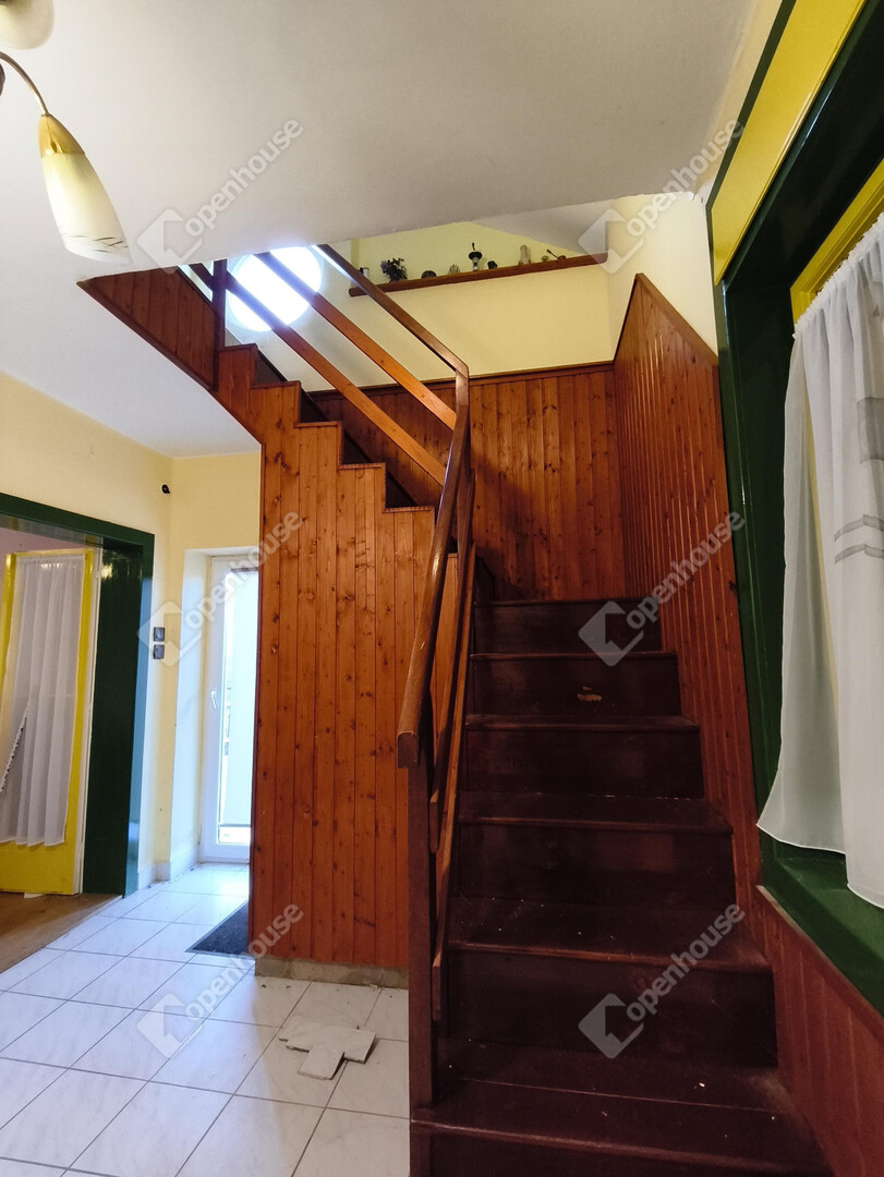 Az alsó szint 1szoba, előszoba, konyha, fürdőszoba és egy fedett terasz, alul pince, elosztással rendelkezik.
