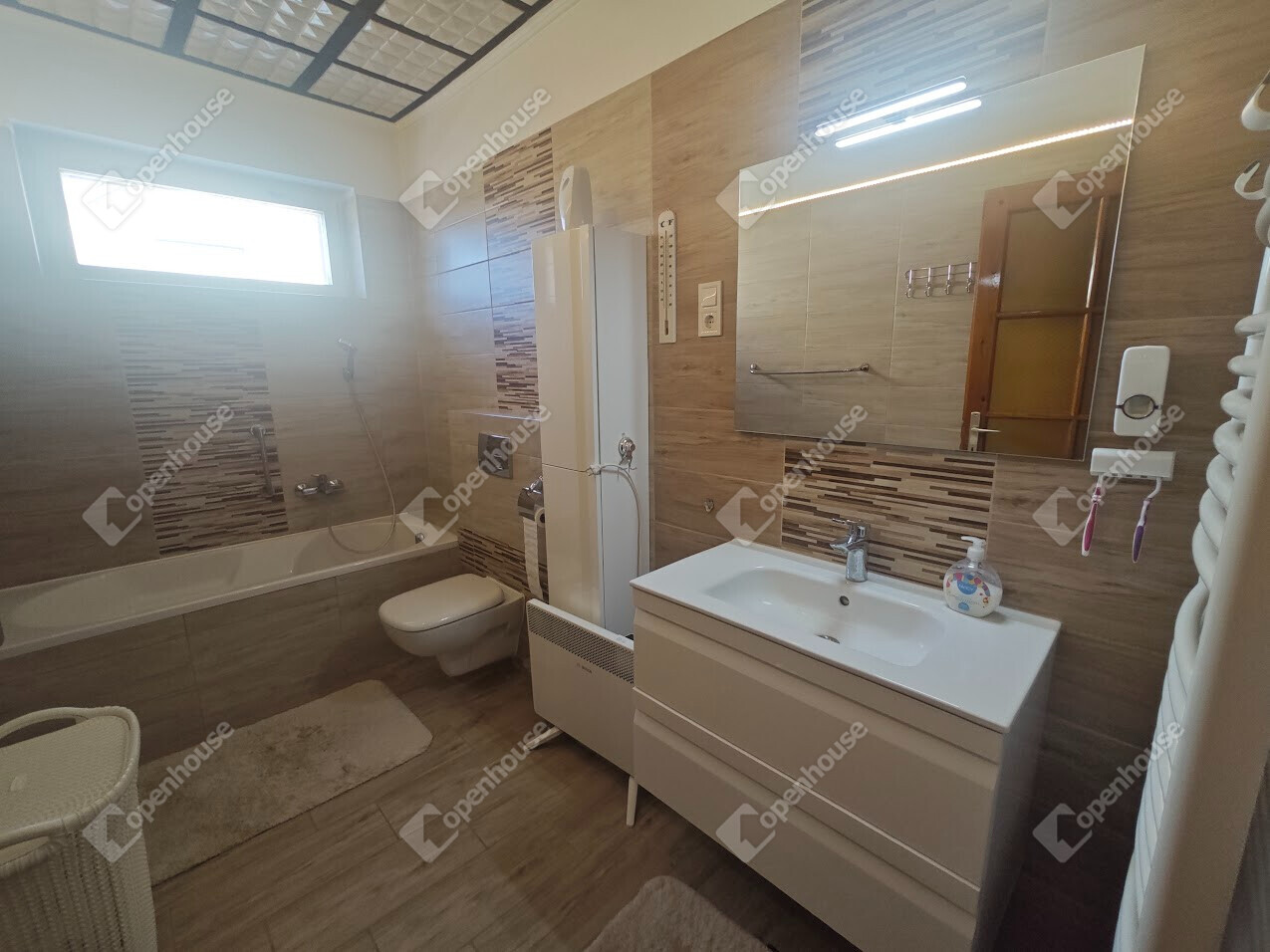 Fűtés: Kondenzációs gázkazán (gázfogyasztás rezsicsökkentett áron) +radiátorok + 4 db Gree hűtő-fűtő klíma - 2 évesek (összesen 16,5 KW)