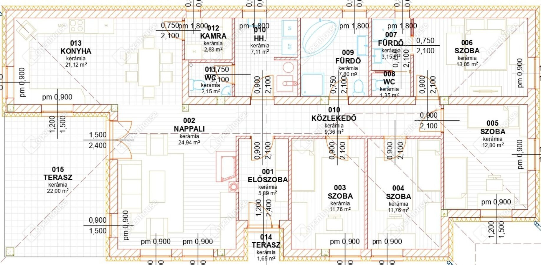 Az ár nem tartalmazza a hideg és meleg burkolatok, szaniterek és a belső nyílászárók árát és azok beépítési költségét.