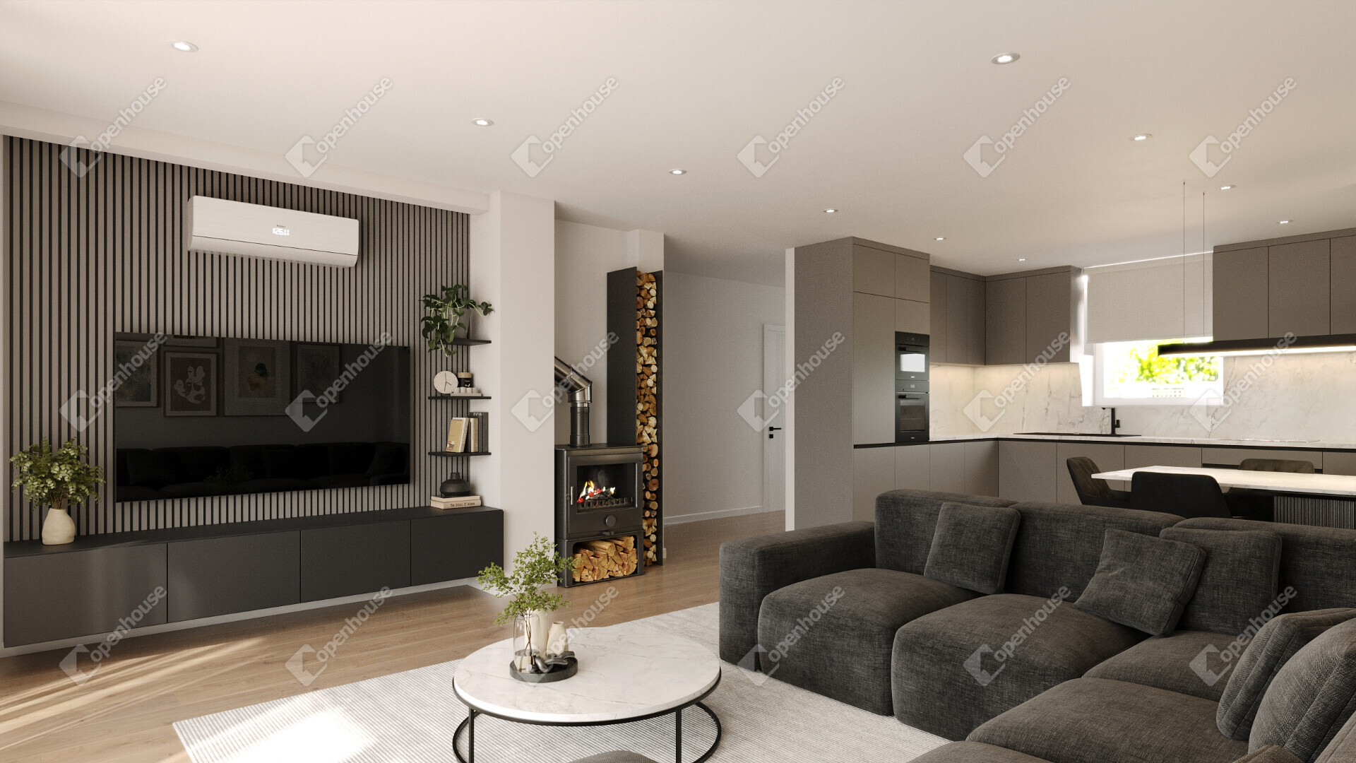 - Légkondicionáló berendezés 1 db AUX típusú, 3,5 kW-os hűtő-fűtő klíma kerül (nappaliban)