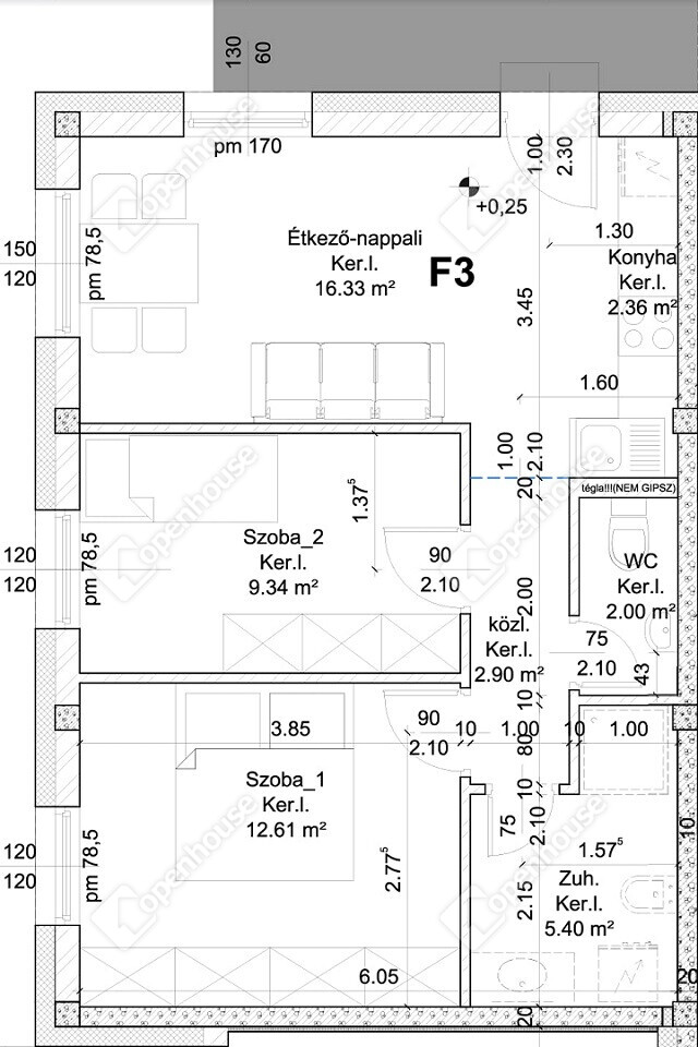 Hasznos alapterület: 56 nm (belmagasság 2,6 m)