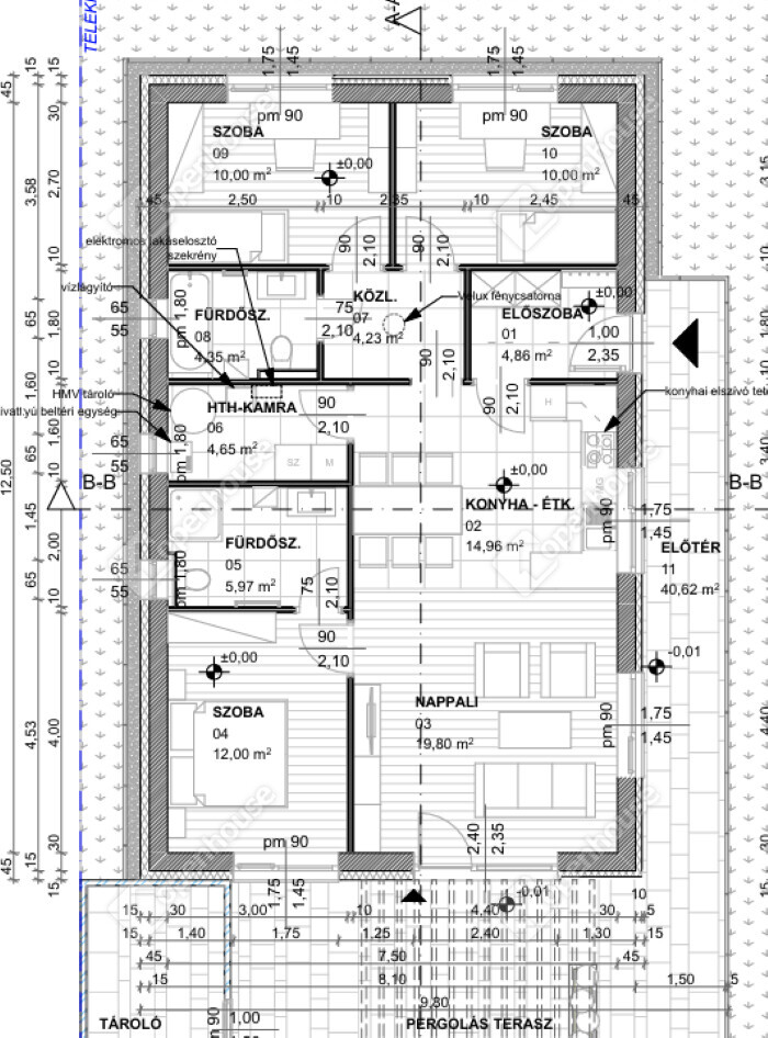 - 3 x hálószoba (2 x 10 m2 + 1x 12m2)