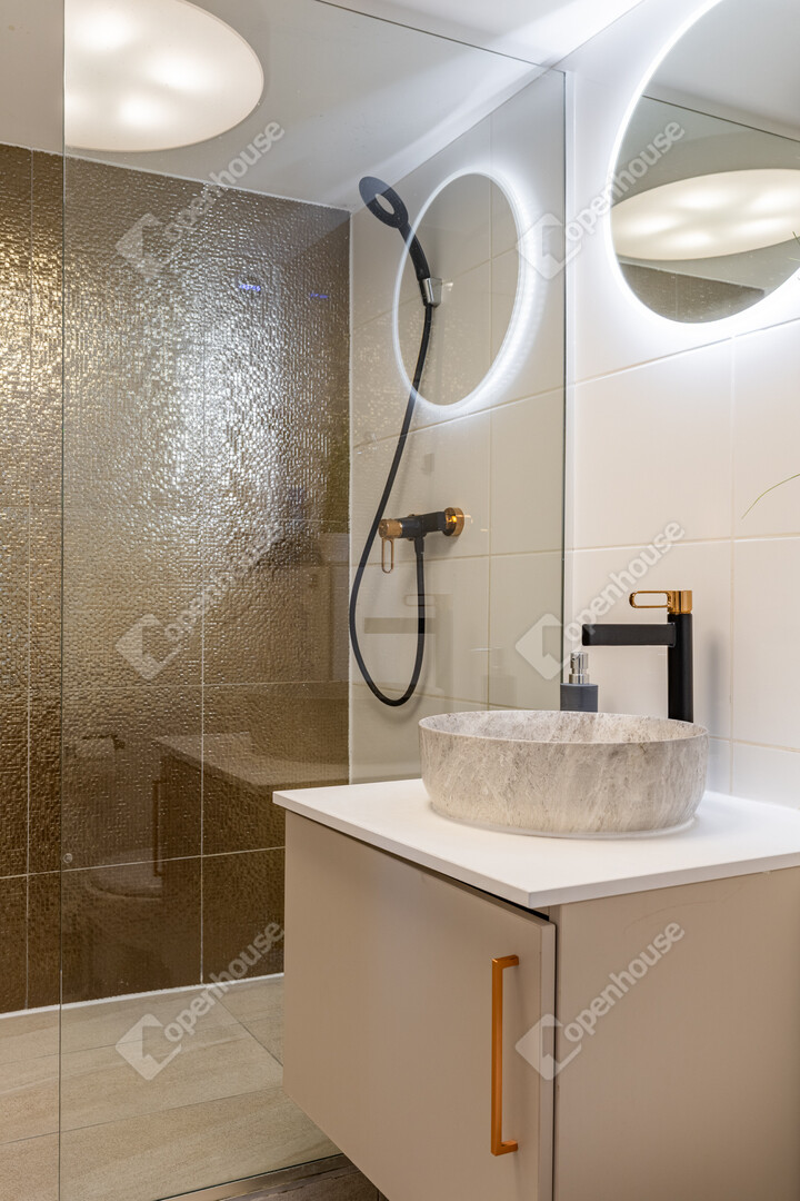 – modern, letisztult fürdő kényelmes kialakítással