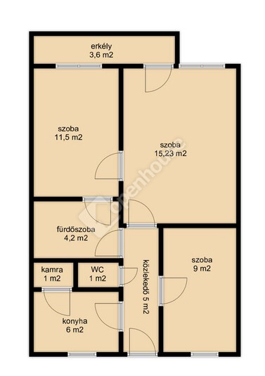 -Fa nyílászárókkal rendelkezik, redőnyökkel felszerelve.