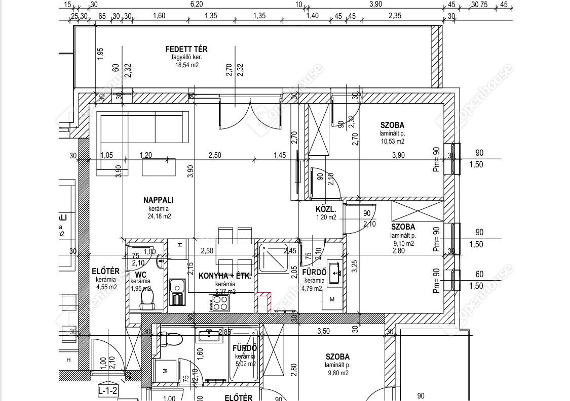 - L1.2 számú lakás 61,67 m2 + 18,54 m2 erkély ( nappali + 1 szoba)