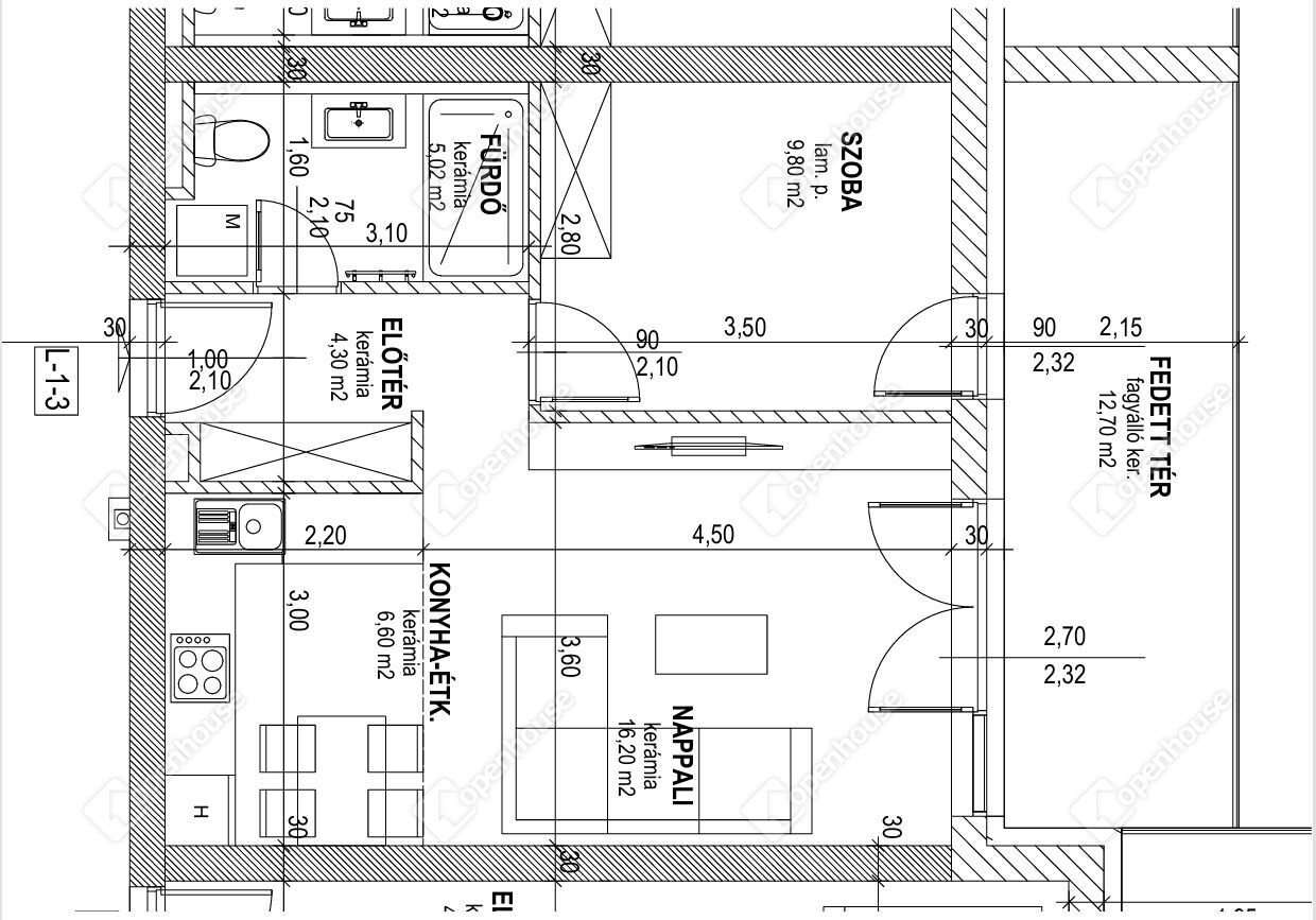 | Előtér | 4.30 m2 | Burkolat nélküli |