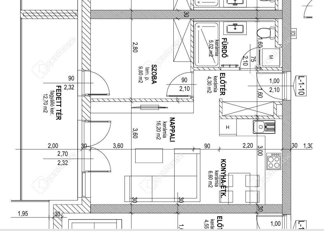 - L1.10 számú lakás 41.92 m2 + 12.7 m2 erkély ( nappali + 1 szoba)
