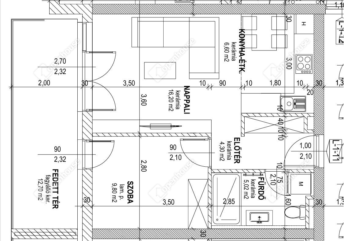 - L1.11 számú lakás 41,92 m2 + 12,7 m2 erkély ( nappali + 1 szoba)