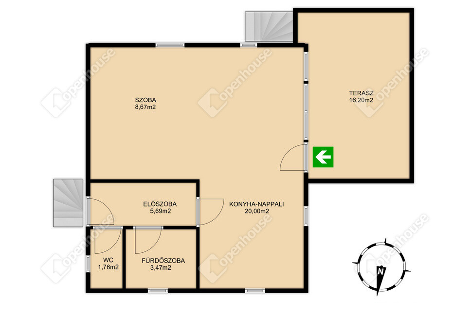 - 57 m2-es lakóterületű, + 16m2 fedett terasz