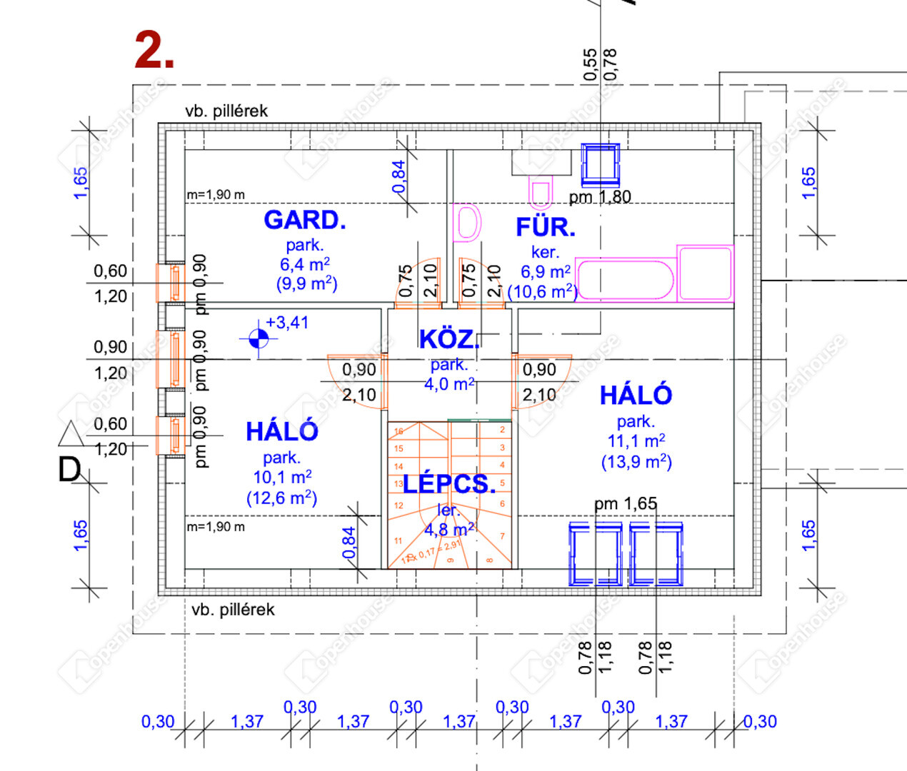 | Zuhanyzó | 3.10 m2 | Járólap |