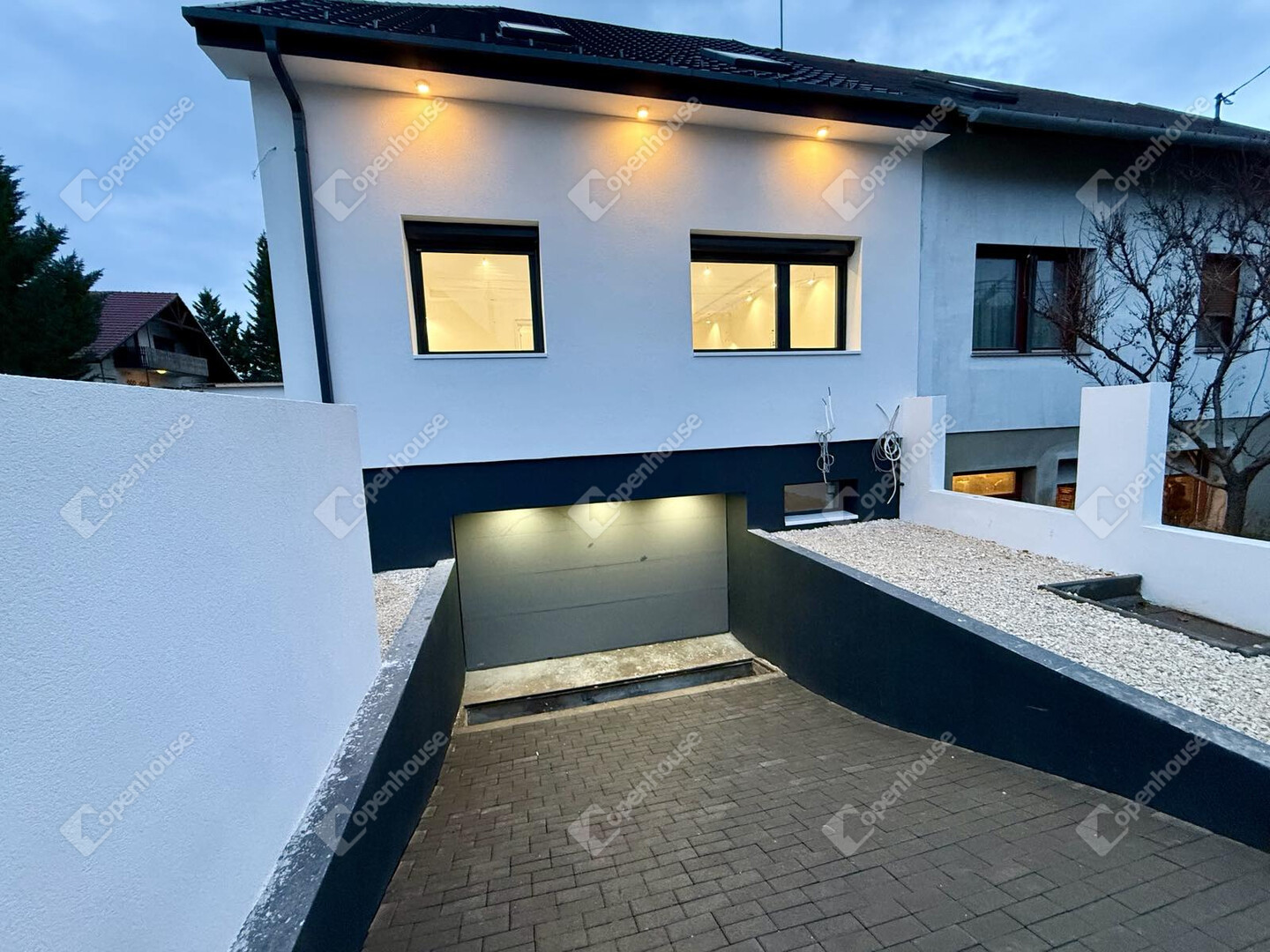 A nagy nappali és a felső szinten található tágas hálószobák kellemes, otthonos atmoszférát teremtenek. A szuterén ablakos helyiségei praktikus funkciók számára adnak teret, a nagyméretű garázs pedig két autó kényelmes beállását biztosítja.