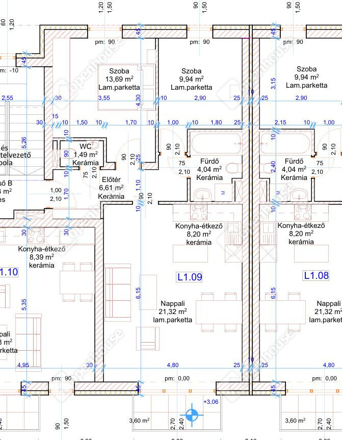 - L1.09 számú lakás 65,29 m2 +3,6 m2 erkély
