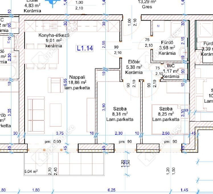 - L1.14 számú lakás 54,96 m2 +5,04 m2 terasz